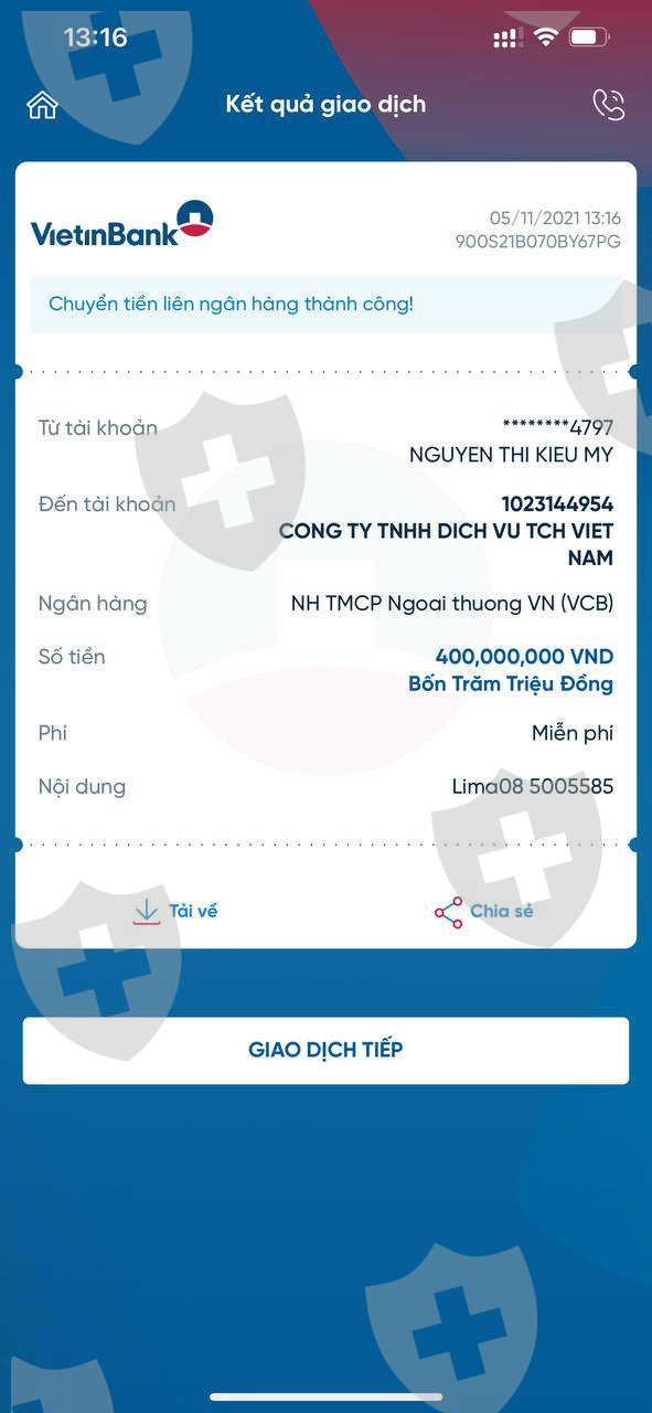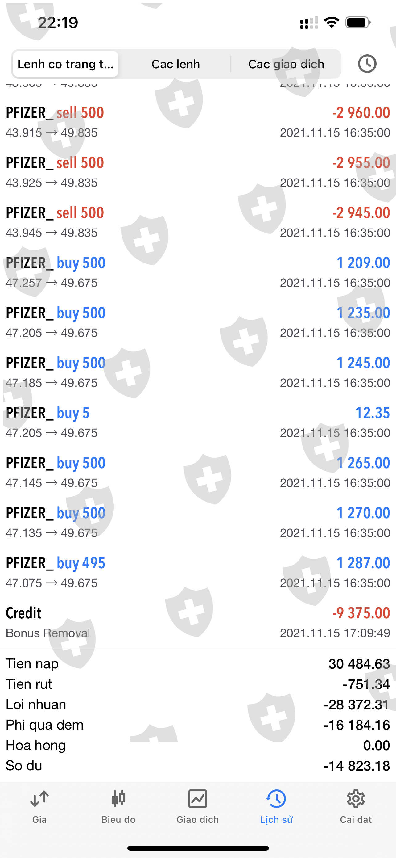 Ngày 12/10/21 mình bắt đầu mở T/khoản giao dịch tại Sàn Bostonmex với số tiền 50tr.Sau đó bạn Kỹ thuật tư vấn mình thêm tiền để mua mã Pfizer ngày 04/11/21 chia cổ tức mình chắc chắn có khoản lợi nhuận chia cổ tức nên ngày 27/10/21 mình thêm vốn 100tr và ngày 28/10/21 thêm vốn 100tr.Sau khi thêm vốn bạn KT hỗ trợ đặt lệnh mua cổ phiếu Pfizer và mua thêm nhiều mã khác nữa làm TK của mình đứng trước nguy cơ bị cháy rồi sau đó bảo mình thêm vốn để cứu TK, mình thêm 400tr để cứu nhưng TK vẫn bị cháy