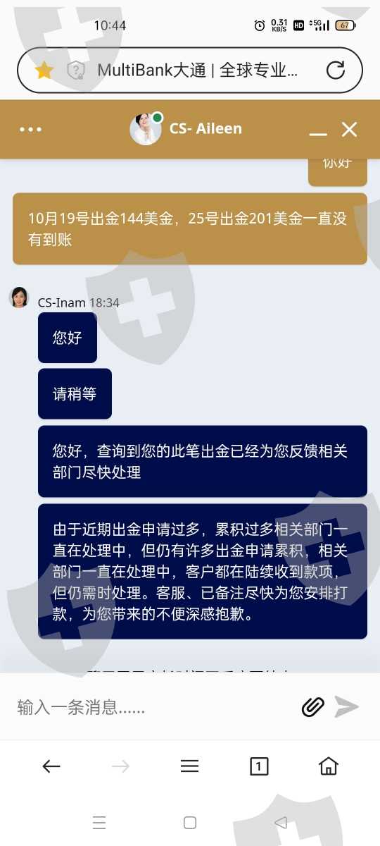 大通金融不给出金,客服一直推脱,每次都说会尽快处理