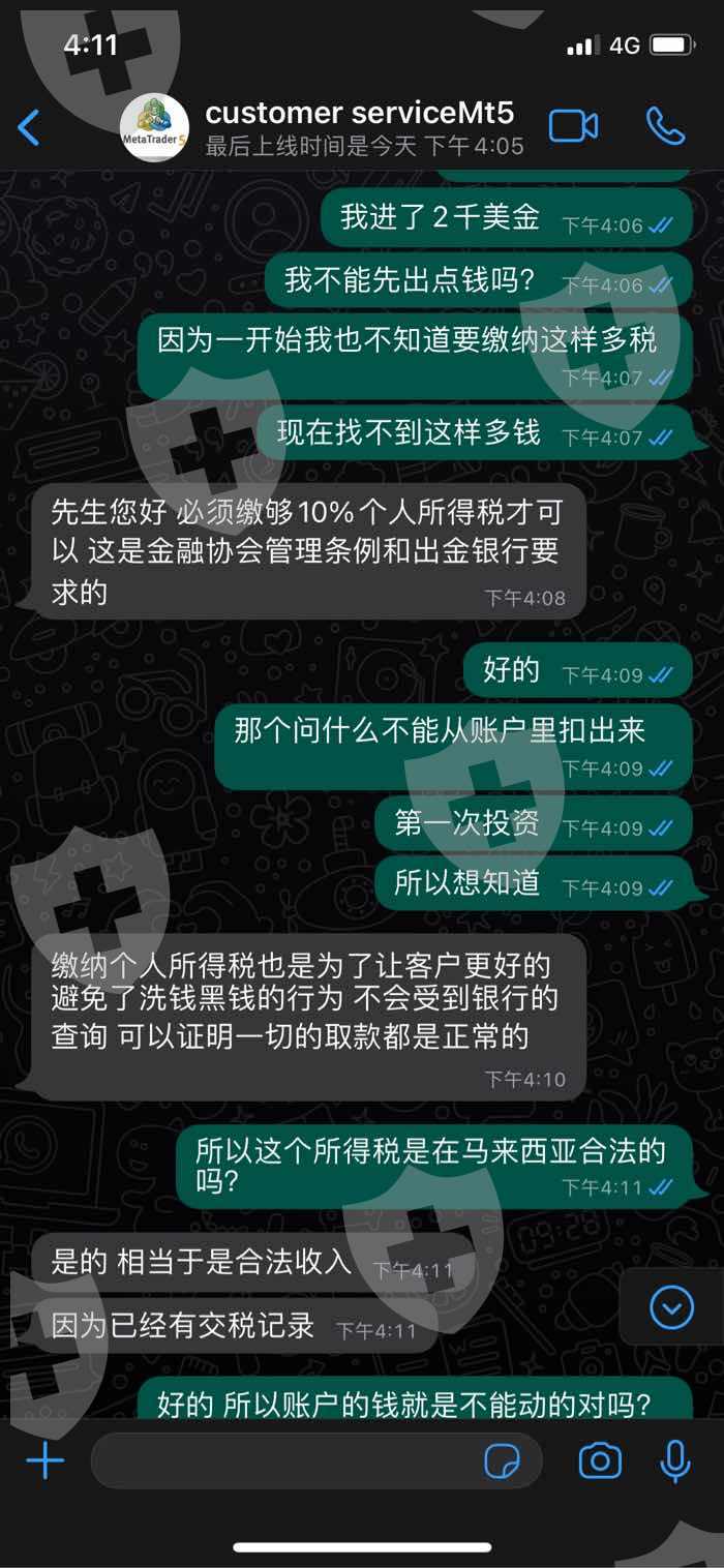钱已经从交易账户扣了15000美金 最后没出金给我我 已经3天了 MT5客服都还没解决 我觉得自己被欺骗了 这些照片是聊天记录 在香港的朋友也帮我换了两次手续费 到现在都没结果