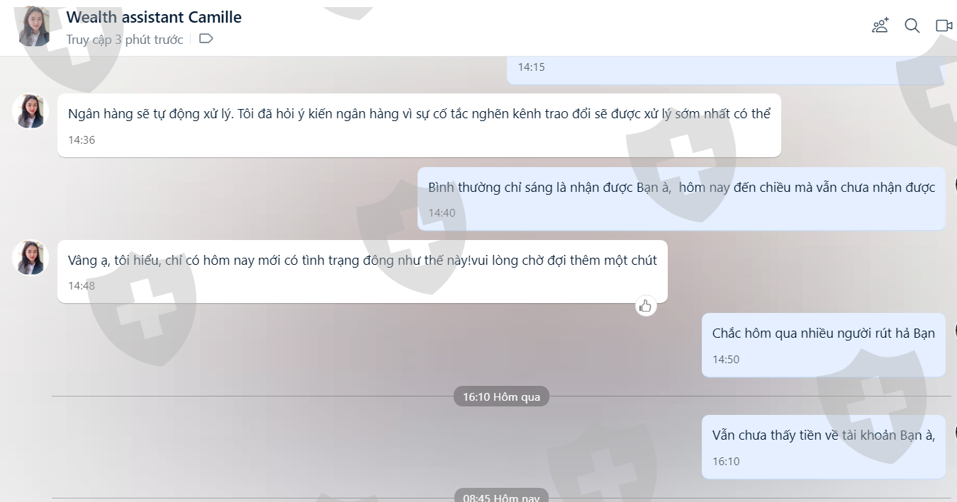 我正在与 Rosytle Wealth 在越南参与一项利润分享信托投资,我已经签署了一项承诺。 2021 年 11 月 10 日提款 5000 美元,2021 年 12 月 11 日提款 9000 美元,总共 2 次或 14000 美元,但到目前为止钱还没有转入我的个人账户,之后我联系了护理服务。客户,我被告知奖励系统被阻止,并且出于多种原因(见附件),我没有看到一个很好的理由,有骗局从投资者那里拿钱给我。因此,我将信息放在这里,供在线社区以及参与此 Rosystyle 平台的投资者了解。我要求 Rosystyle 把钱还给我。我会发帖直到ROSYSTYLE WEALTH付钱给我。
