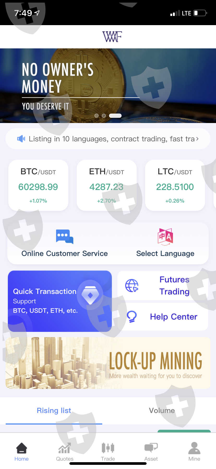 WWF平台让我下了地狱!这是个假平台!客服也联系不上。有人向我介绍了这个平台,使我相信了这个平台去做短期投资,却突然关门了。我的资金无法提现,因为客服让我在提现前线充值。但我不会这么做因为我为什么要真么做。这不应该是平台规则。