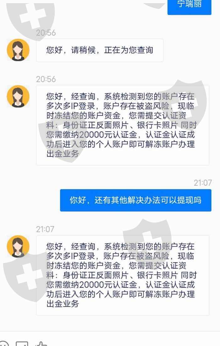 提现时账户被冻结 要再交付20000块钱的现金认证金还有其他资料 需认证成功后才可退钱