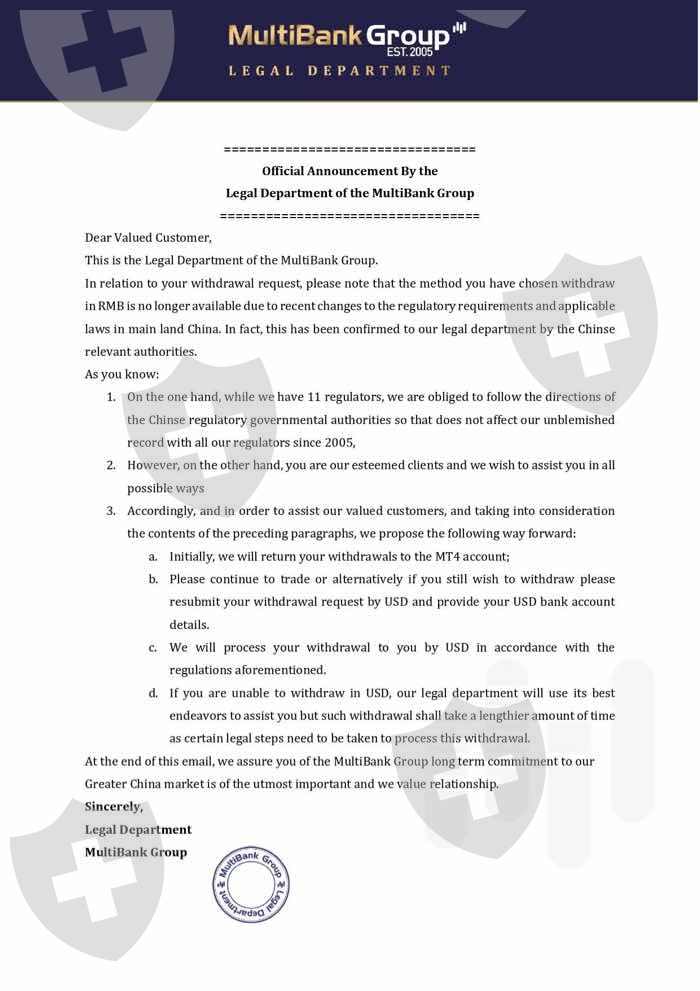 此时此刻用法务部的角度来警告,还信誓旦旦说他们是为了投资者着想。真的为中国投资者着想,请做好一件事情,让我们的出金申请以人民币的形式真真正正的出金到位