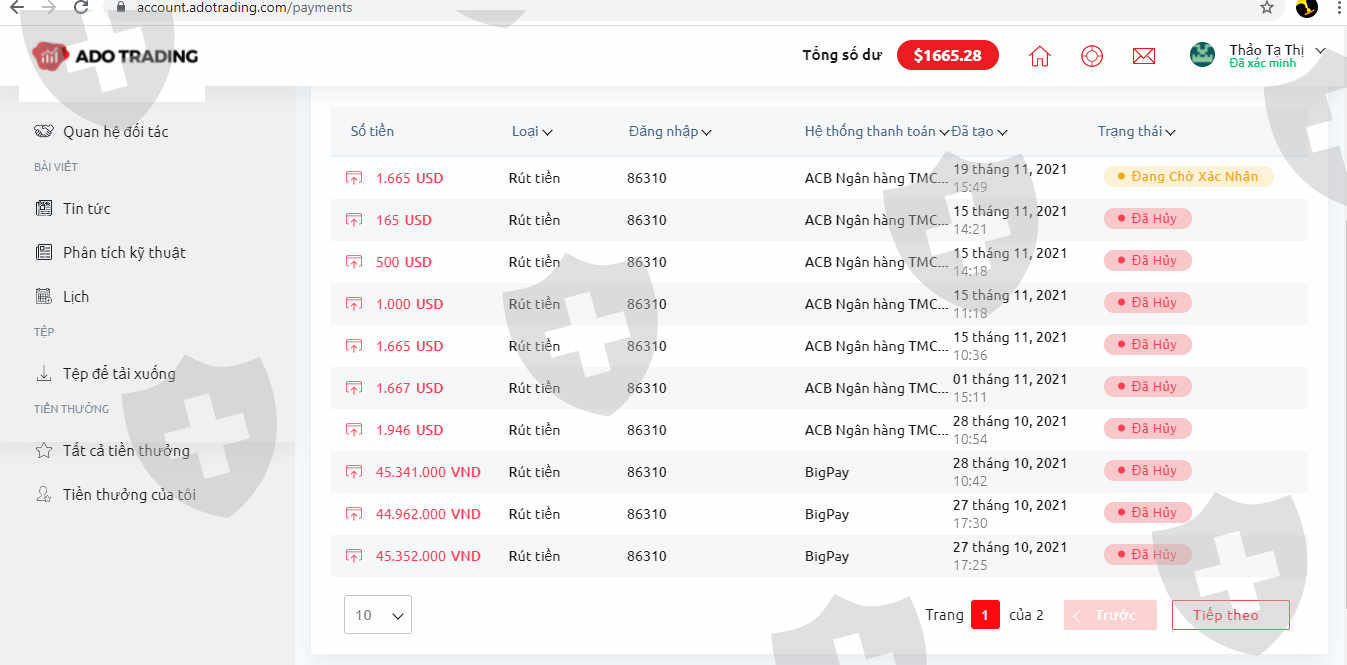 Tôi rút nhiều lần không được, ib kêu sàn bảo trì, lỗi hệ thống....sau kêu giao dịch 10 lot mới được rút. Tôi nói vậy thì cháy tk, ib không nói gì thêm. Cả tháng nay tôi chưa rút được tiền về