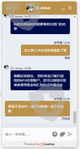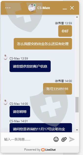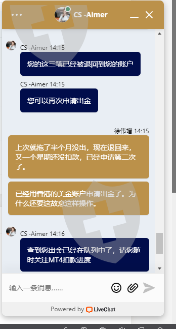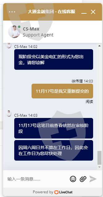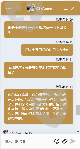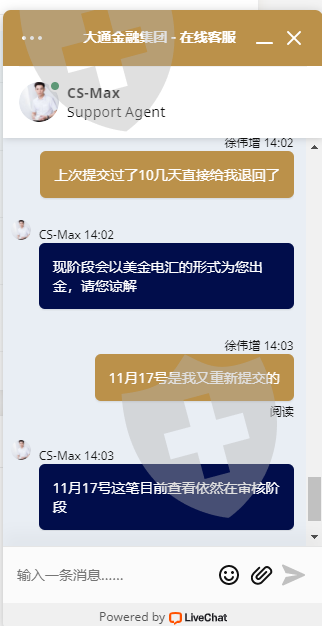 我是2021年10月25日出金一笔4809的,11月1日出金一笔18341.44的全部又给我退回了还是一直拖着不给处理 我可是信用卡入金的还有没有点良心