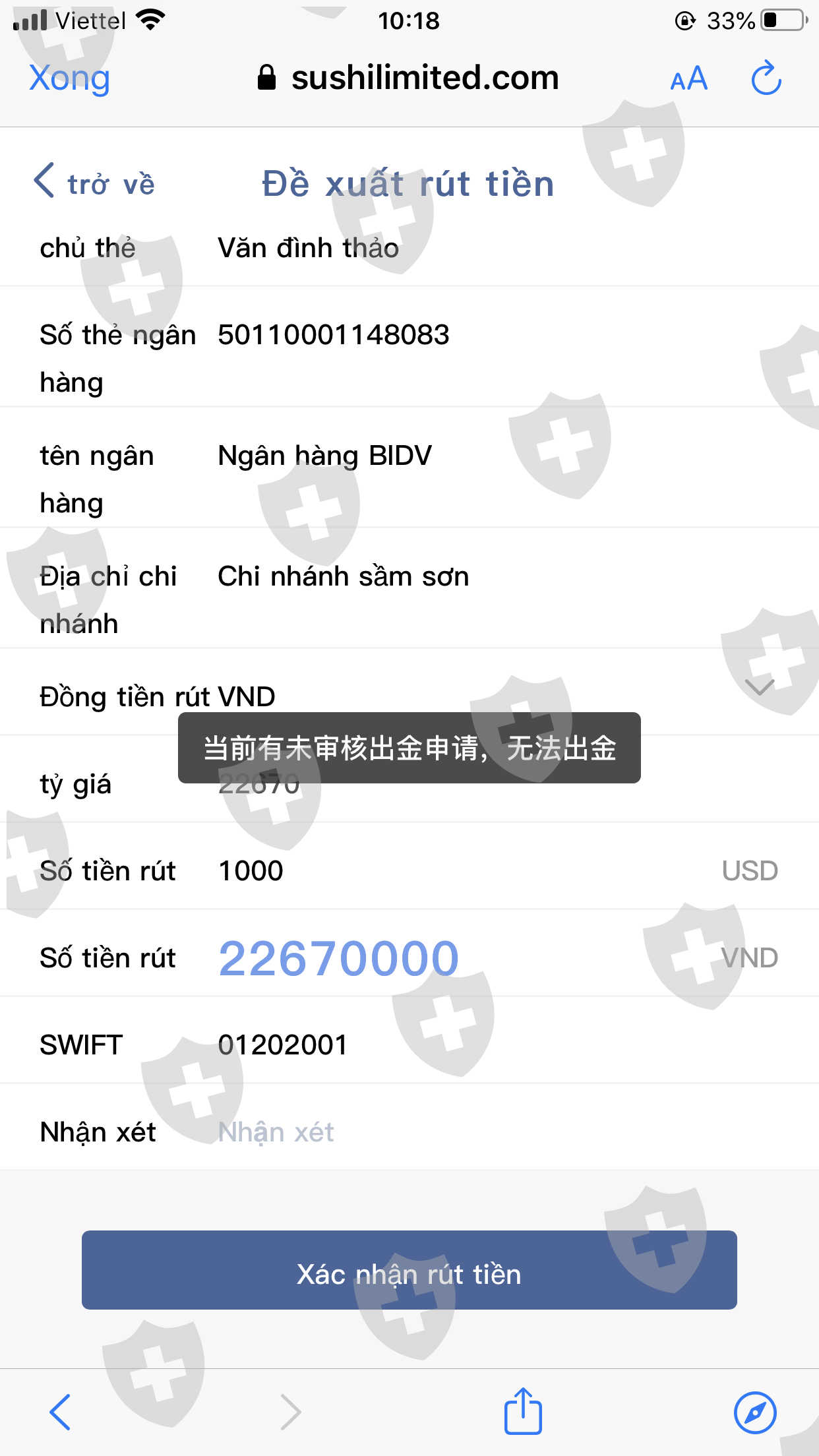 USDC是Sushi global investing limited的交易商。他们在开设外汇账户时会收到相同的电子邮件通知,willam0079@outlook.com,willam0079@crmt4.com。我不能从他们的交易所出金。他们让我缴纳 20% 的税。他们是骗子。他们已经从我的 MT5 账户中扣除了款项,但我的账户仍未收到汇款。