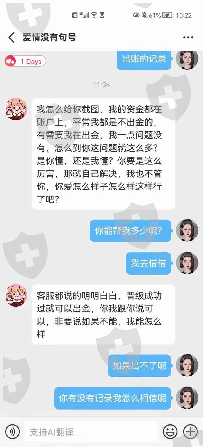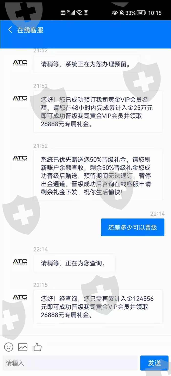 ATC BROKERS打着外汇的幌子,步步诱导,以第一次低投资收益,引诱追加资金至10万,后面却设置门槛说还要追加到25万才能出金,否则原10万本金也将冻结,恳请有相似遭遇的伙伴给予帮助为谢。也以此提醒想要投资的伙伴投资谨慎,不要被骗!