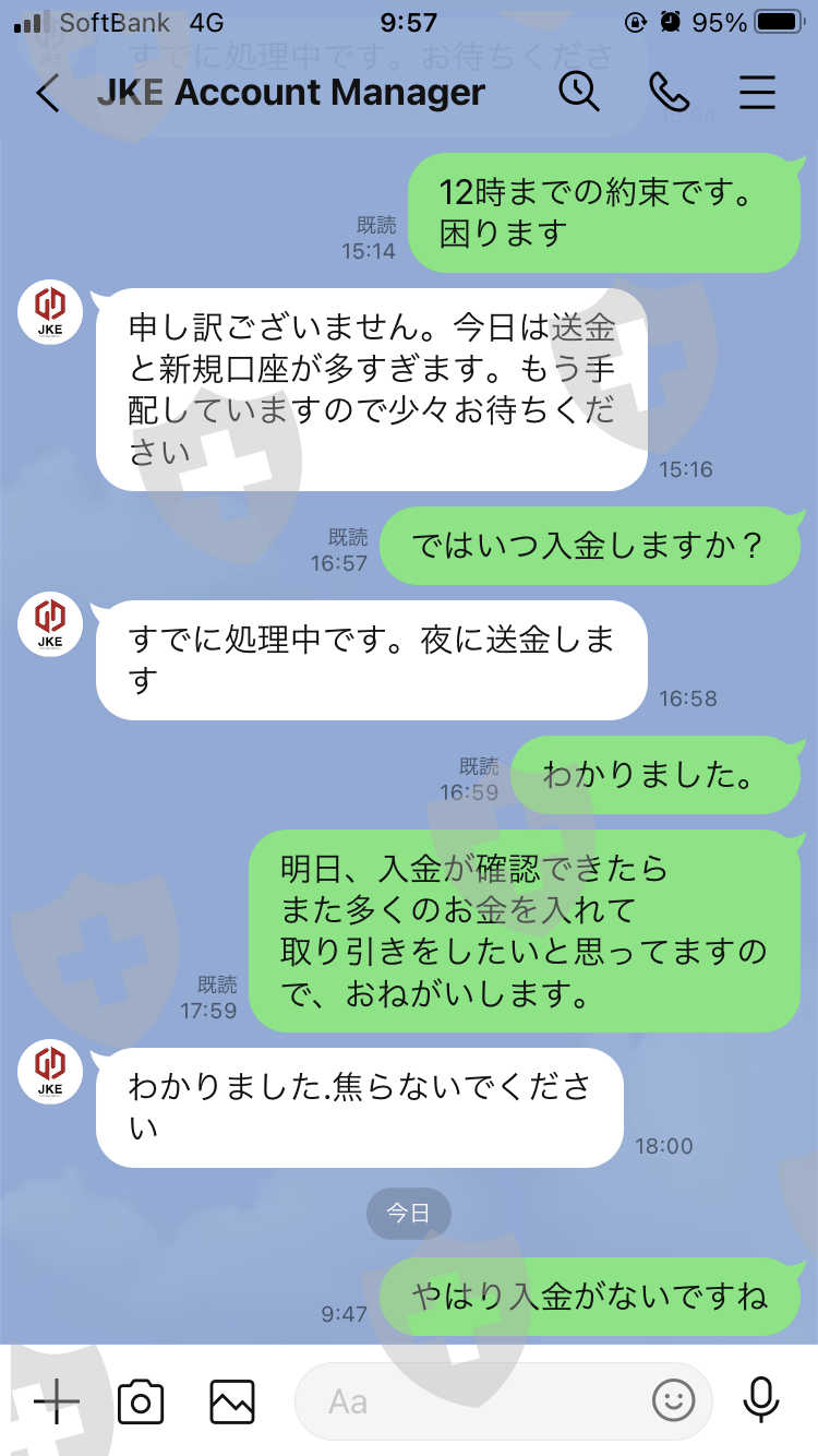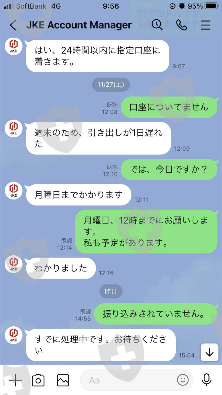 そう言ったJKEは、24時間経っても入金しません。