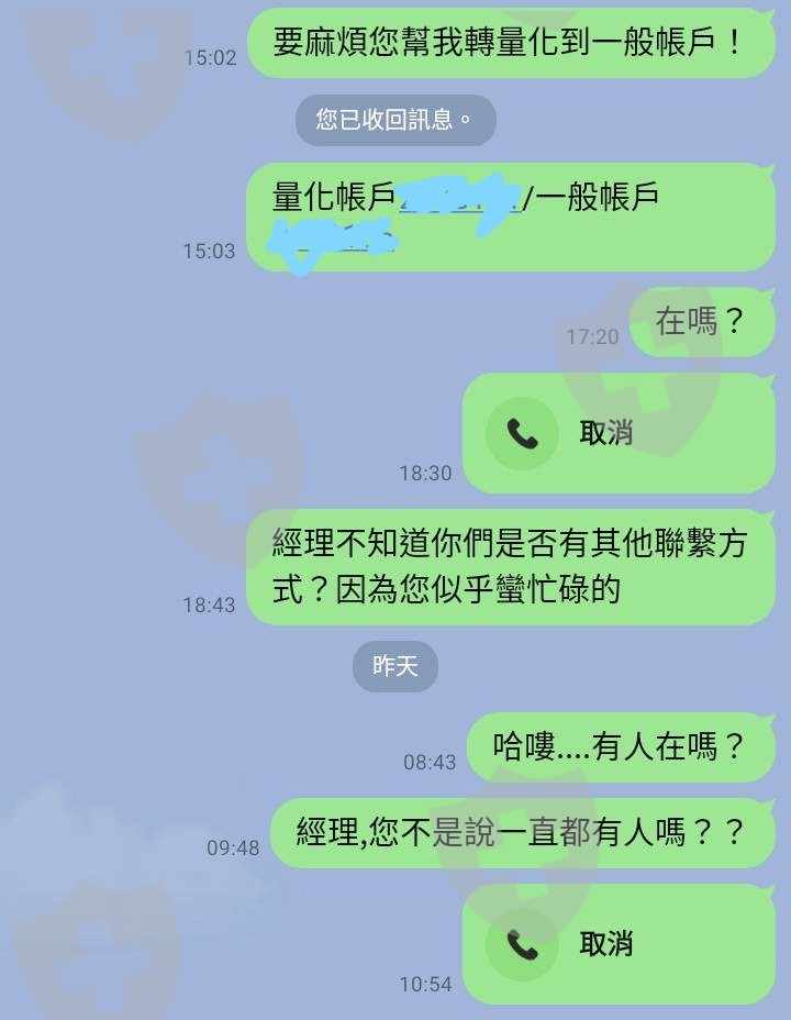 誘騙進入量化後,需透過後臺才能出金。但營業員消失根本聯繫不上