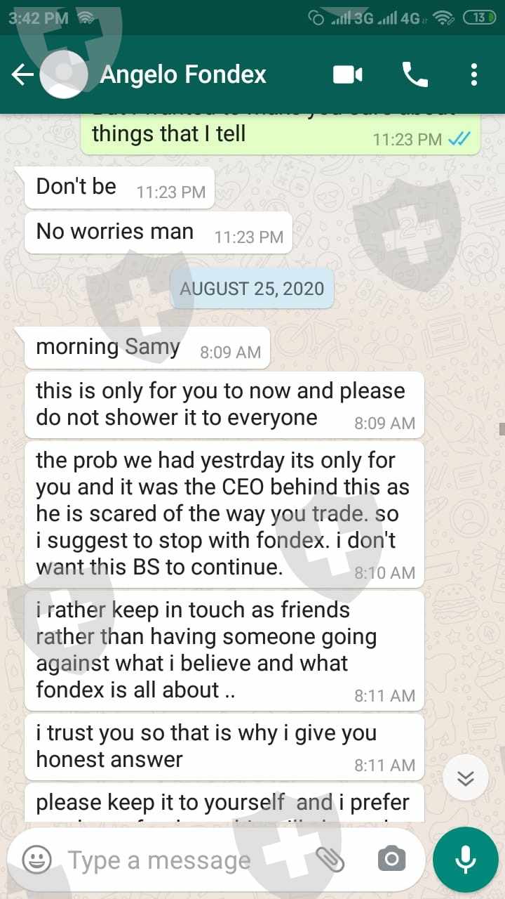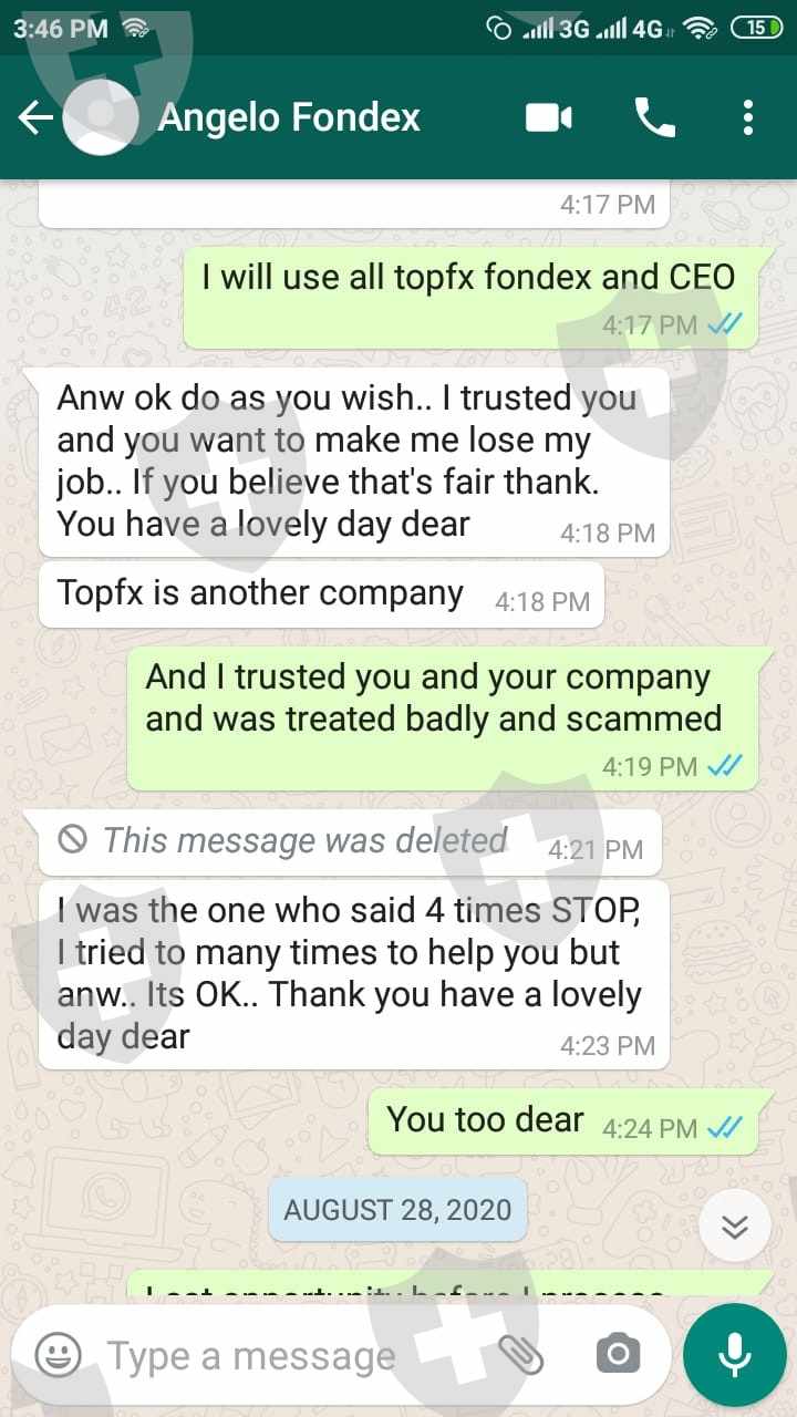 They simply manipulated my account settings and increased the spread/markup 7 times more and even more when open a position. I noticed these changes and sent to Angelo ( X sales manager ) and he replied that the CEO is behind that because he is scared of the way i trade and make profits ( $1000 to $175000 in 3 days ).And in one trade i noticed that they deduct $15000 added to loss when i opened a new position because of the changes they made to my account and because ctrader system don't report the spread but report only commission in the position details.They told me to take the remaining money and not to trade with them again but even after i lost the remaining balance in another position.I tried to negotiate with them to take the extra spread they take from me but they refused.Domain fondex.com will forward you to fondex.com.sc if you are global customer ( It means Fondex.com owner he is the same owner of fondex.com.schttps://fsaseychelles.sc/regulated-entities/capital-markets - Mr. alexandros zisis katsaros as Securities Dealer accredited with Fondex Limited and he is the Group Chief Executive Officer - TOPFX LTD and Fondex ( https://cy.linkedin.com/in/akatsaros ).