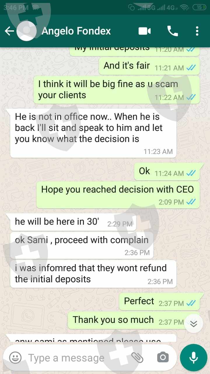 他们直接操纵了我的账户设置,并在开仓时将点差/加价提高了 7 倍甚至更多。我注意到这些变化并发送给 Angelo(X销售经理),他回答说 CEO 在背后支持,因为他害怕我做交易和获利的方式(3 天从1000 美元到175000 美元)。在一次交易中我注意到由于他们对我的账户进行了更改,并且因为 ctrader 系统不报告点差而仅报告头寸详细信息中的佣金,他们在我开设新头寸时扣除了 15000 美元增加的损失。他们告诉我拿走剩下的钱并不再与他们交易,但我在另一个仓位失去了剩余余额。我试图与他们谈判以获取他们从我那里获得的额外点差,但他们拒绝了。域名FONDEX.com 会将转至FONDEX.com.sc。 如果你是全球客户(这意味着FONDEX.com的所有者也是FONDEX.com.schttps://fsaseychelles.sc/regulation-entities/capital-markets - alexandros zisis katsaros 先生作为证券交易商获得认可FONDEXLimited,他是集团首席执行官 - TOPFX LTD 和FONDEX( https://cy.linkedin.com/in/akatsaros )。