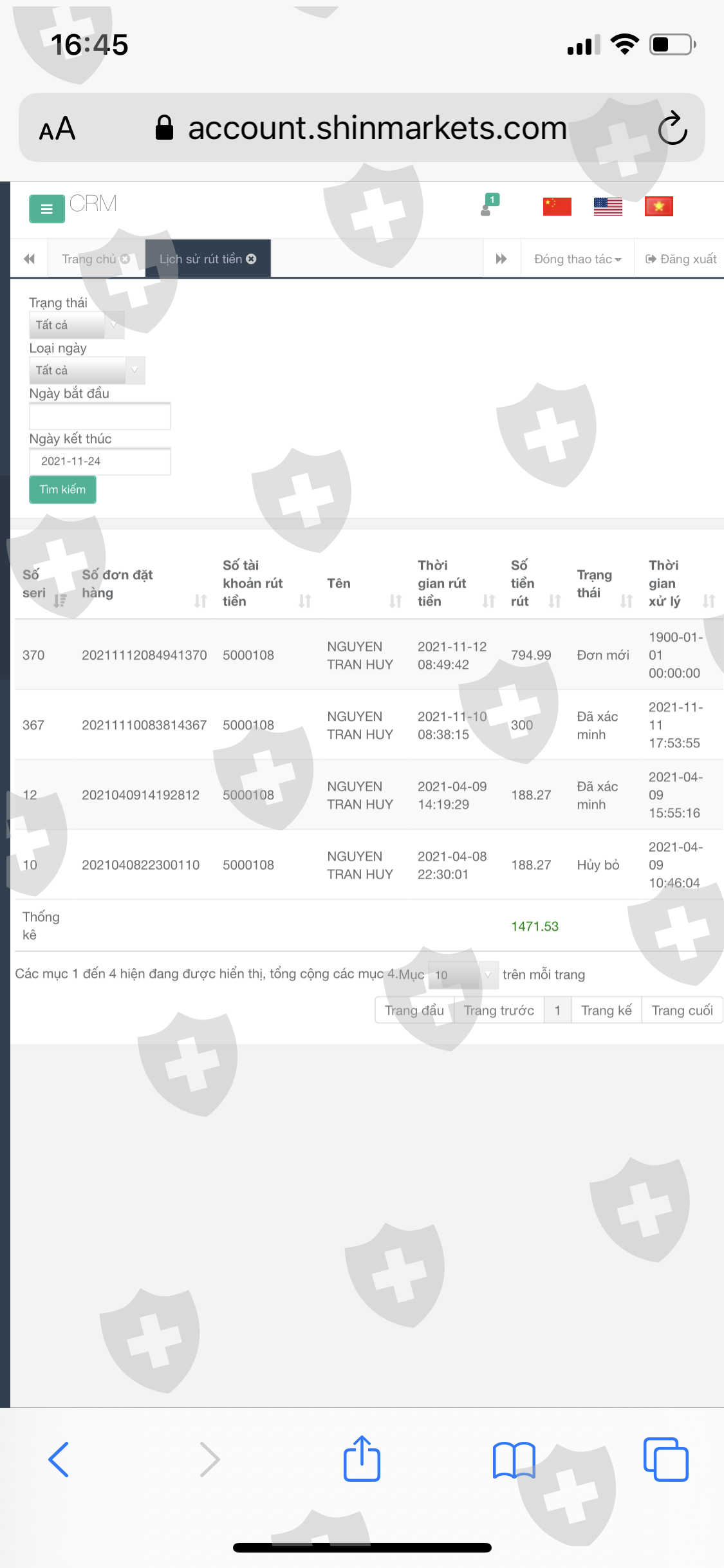 Đến nay sàn không duyệt lệnh rút.