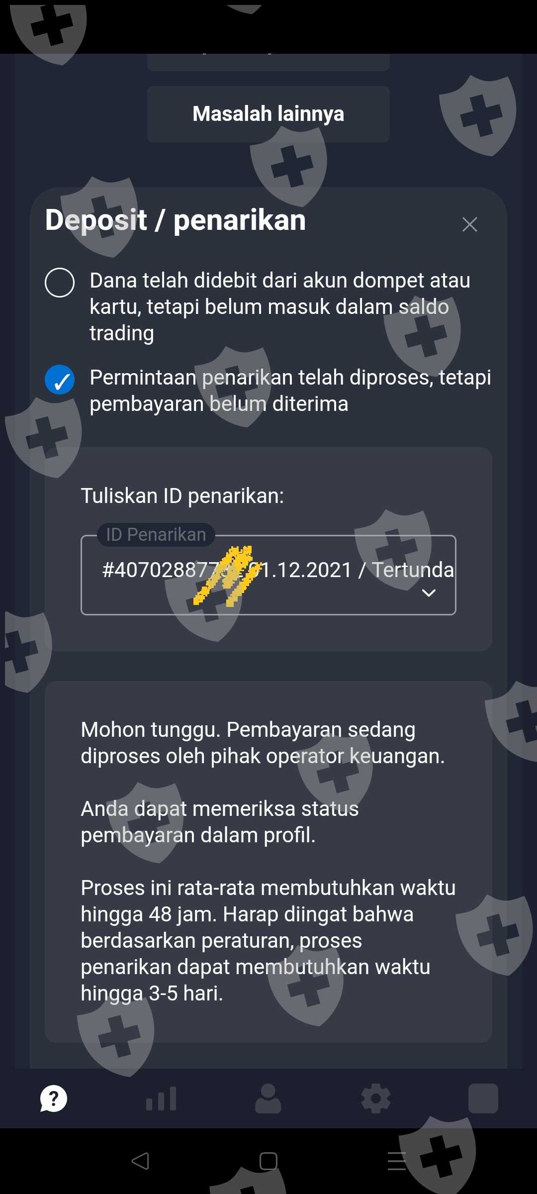我提取资金和QUOTEX没有发送我的资金。迄今为止的待处理状态