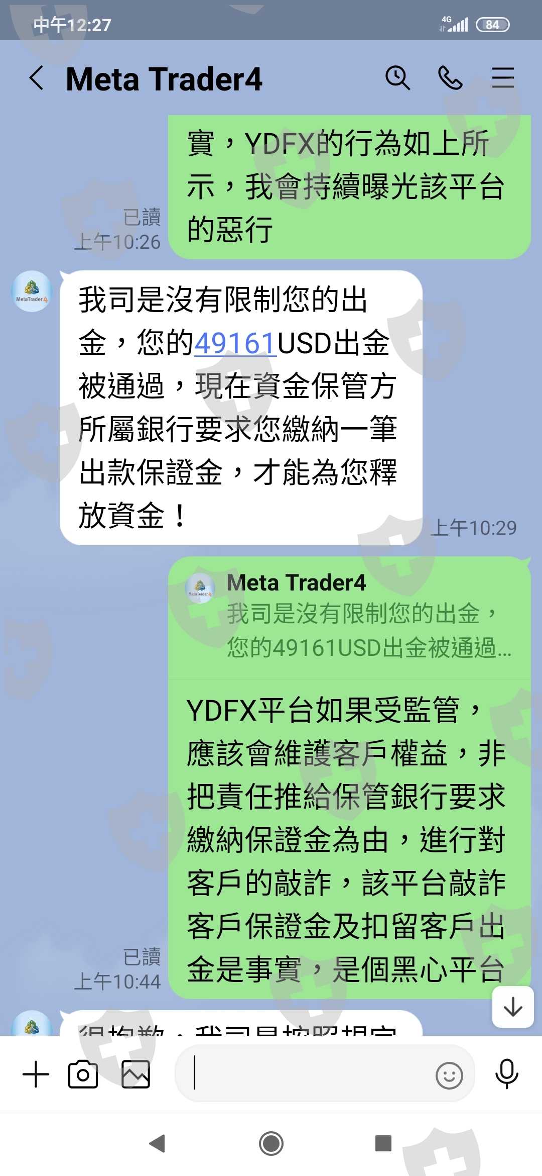我按正常程序出金,該公司卻要繳30%保證金才能出金,YDFX違反誠信原則,敲詐客戶保證金及限制出金