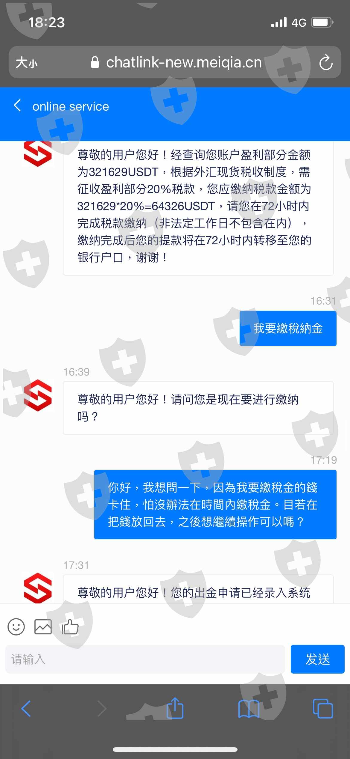 ㄧ開始註冊並不知道出金若大於本金還要另外繳稅20%,繳了稅後.客服說24小時內會出金,後來詢問進度.才知道又要繳保證金!不繳保證金就會被凍結!這不就是被騙了嗎⋯⋯