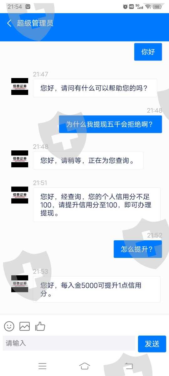 我申请提现出金了五次,只同意了两次,前面两次说提现出金太多,最后一次说提现出金次数太多了……问客服为什么就说我频繁提现出金导致了我的信用分被扣了……不允许出金,想要出金就充值5000一个信用分,充五万补齐信用分