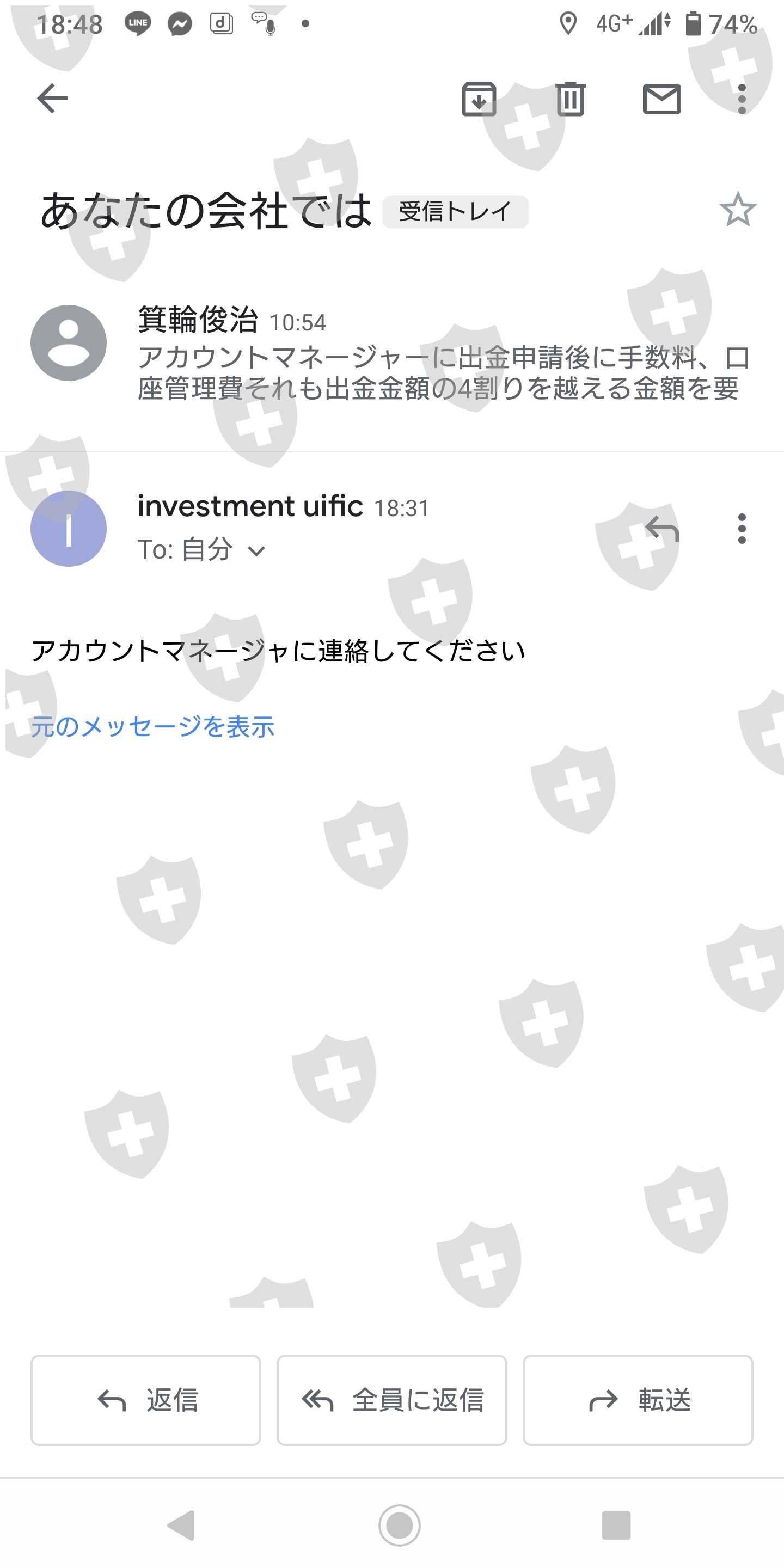 カスタマーセンターは数々の質問を無視して返信を全くくれません。八方塞がりです。もはや法律介入していただくしかありません。アカウントマネージャーは詐欺的な事を繰り返し、最後は税金を払い込ませて、後から常識では考えられない手数料と口座管理費を請求してくるので、会社のホームページで出金申請と税金支払い申請を出して許可は降りてますが、口座に入金はありません。金額は25000ドルで税金は2500ドル。この金額は既に口座から引き出されています。エラーになっている事をユナイテッドは教えてもくれず、カスタマーセンターは質問にも答えず。現状は25000ドルの引き出しの許可と2500ドルの税金出金許可のままです。アカウントマネージャーに送金した税金分を25万円は返金もなく、そのままです。25000ドルの口座への振込と出来れば口座残高の101517.29ドルの無条件返金をお願いします。