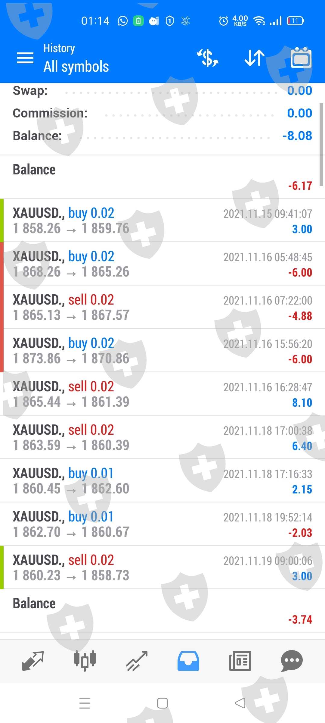 没有实时交易。只有历史
