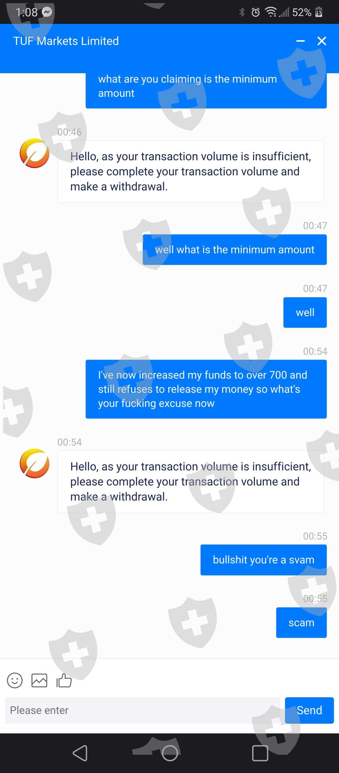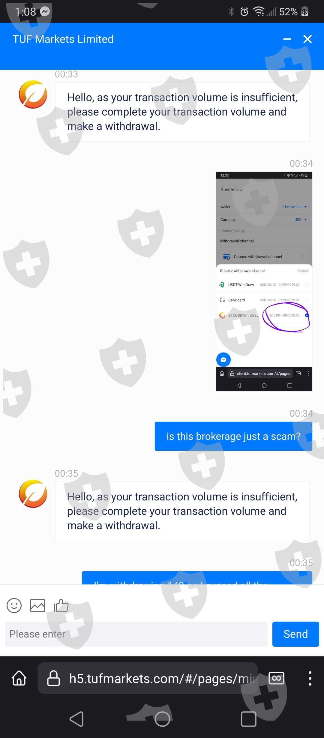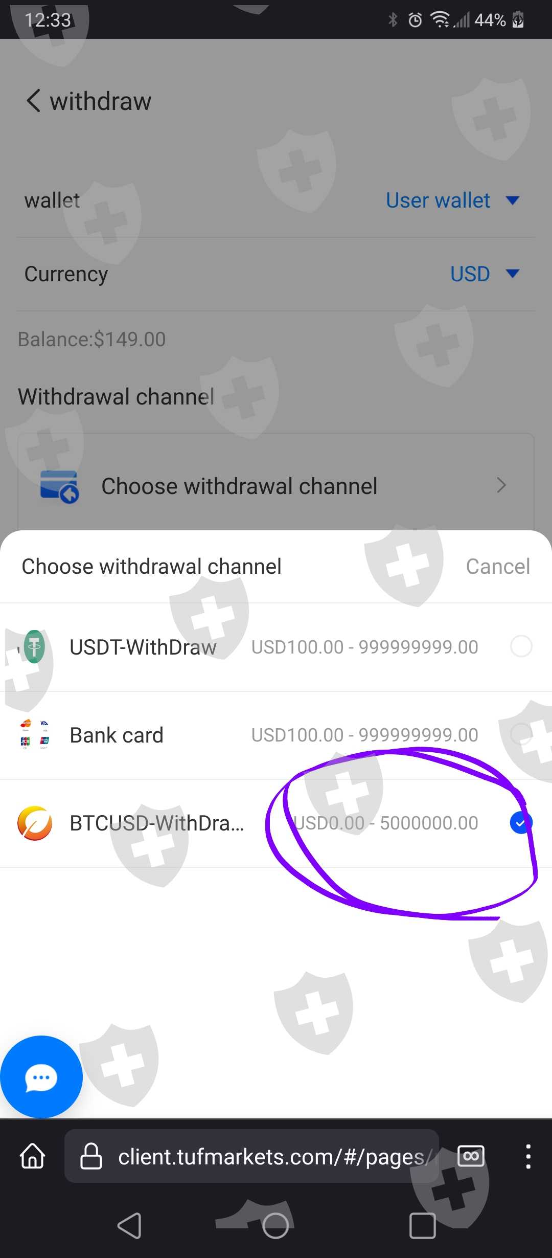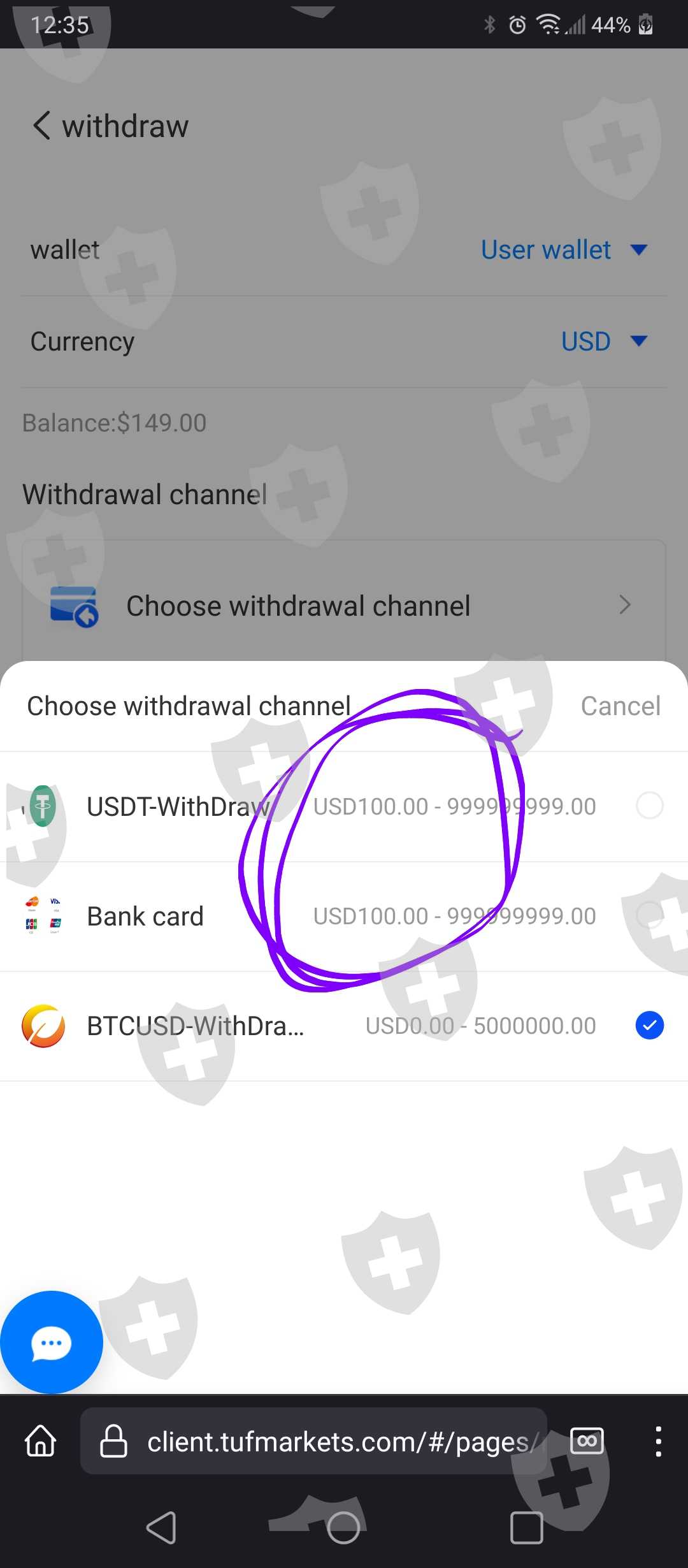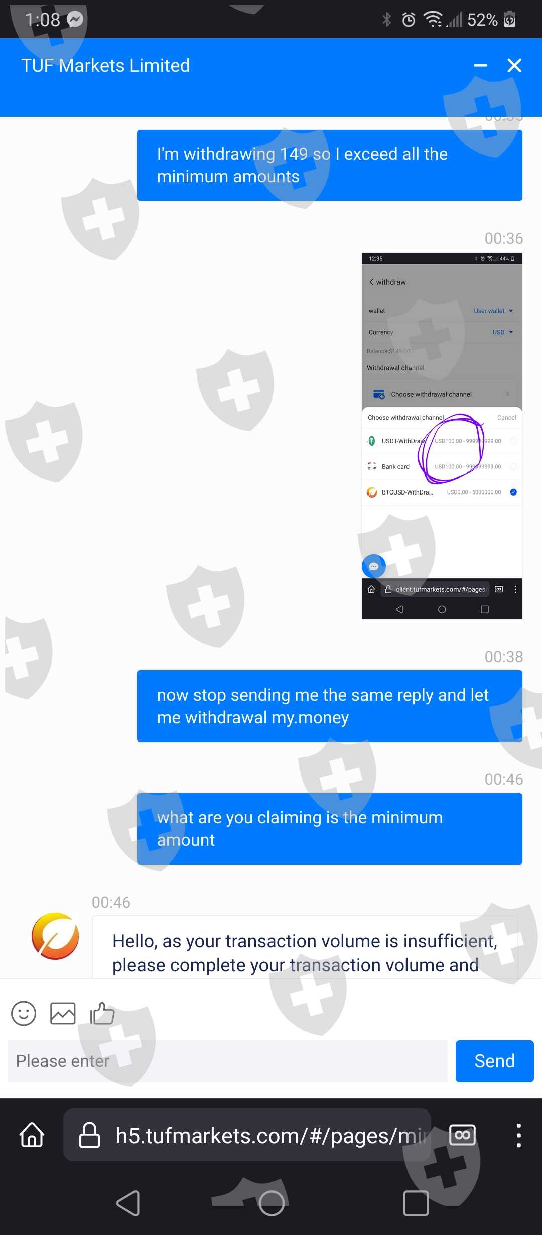 I just start using TUF for MT5 after earning a bit I tried to remove some funds to learn how, at first 149 and after saying it was insufficient funds I increased to 709.65 and still told insufficient funds yet USD and bank card say min is 100 and 0 for BTC. I tried pulling funds as BTC to 3AAT6woP5CDXNpKU4FQgoVkyiuktcyMAwu but was continually told insufficient funds all my info is in pics below my email is s_triple_c@yahoo.com my name is Chris Windsor