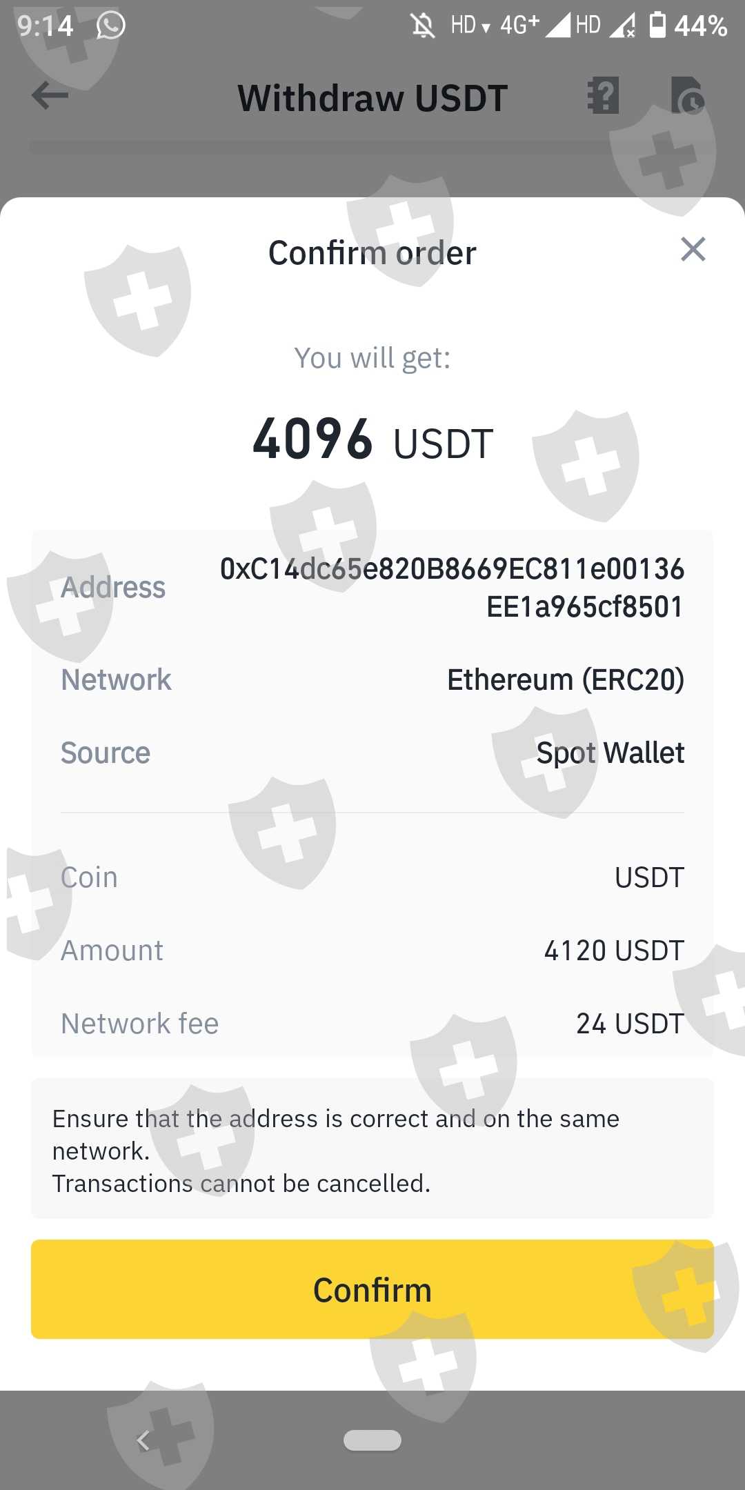 Unable to withdraw