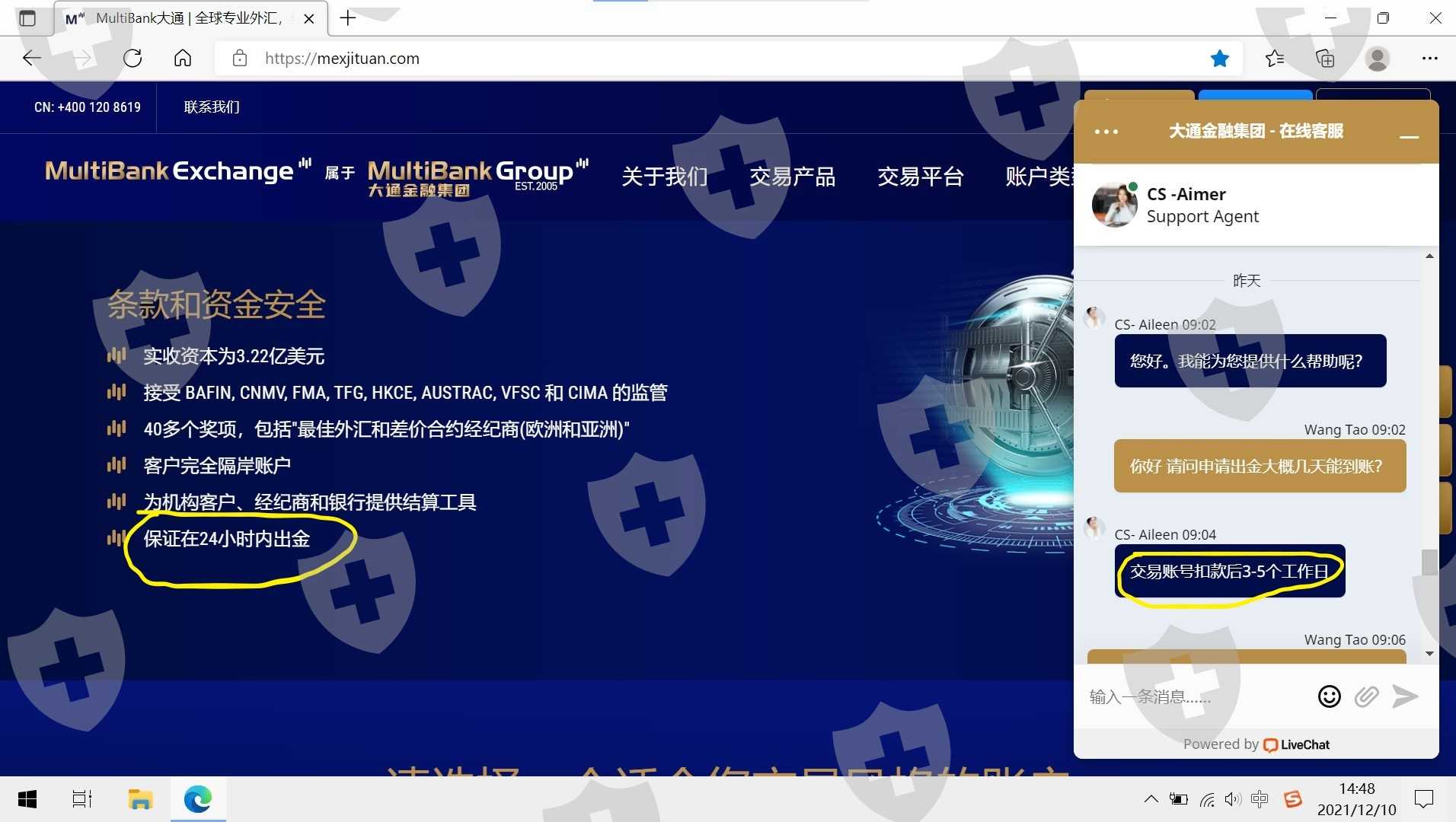 本人12月7日申请出金,让客服催过三次以上没有任何进展。客服说账户扣款后三到五个工作日才能到账,现在账户都还没扣款。平台官网承诺24小时内出金,诚信何在??要求立即办理出金并支付额外赔偿!否则本人将搜集证据到国内外监管部门投诉,同时报警并取得有效报案回执!