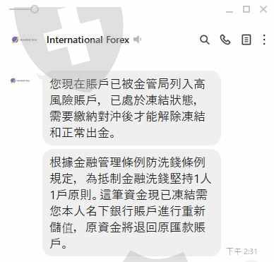 International Forex辦理出金時客戶服說帳戶內有非本人儲值無法出金,並把我的帳戶凍結