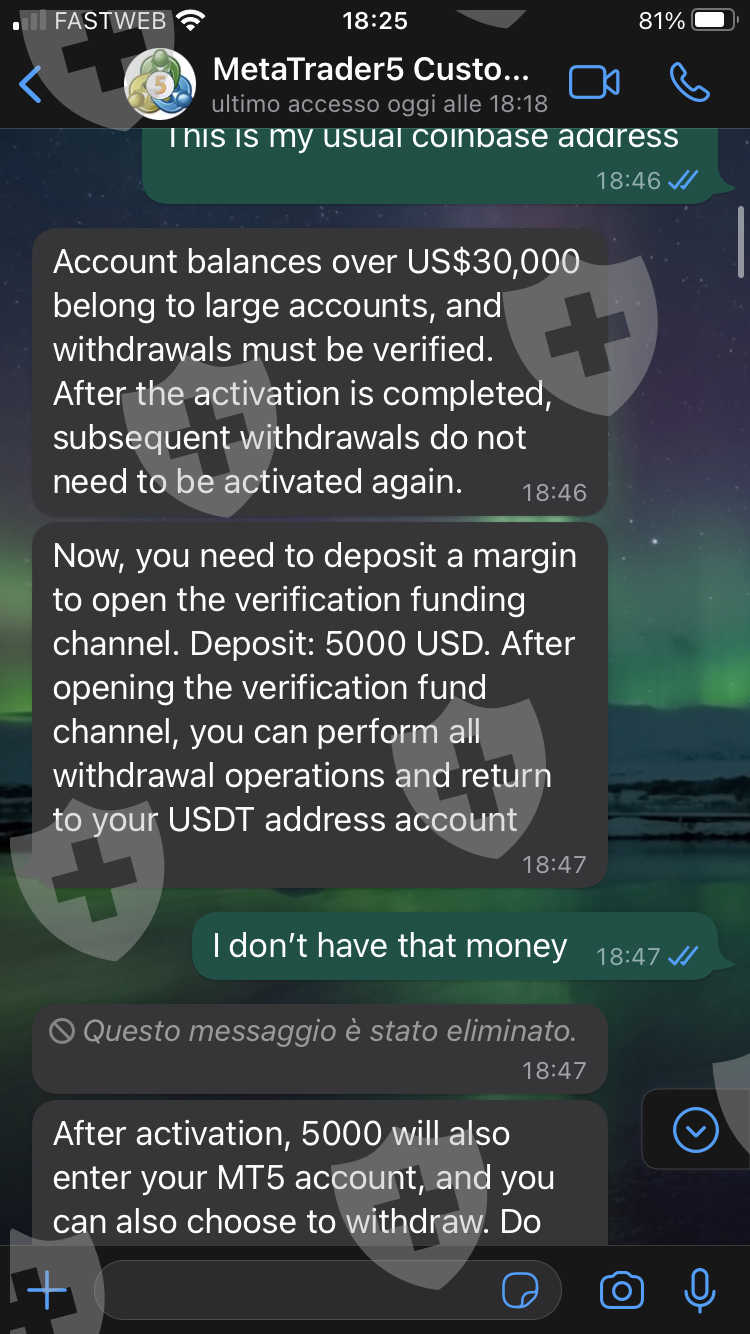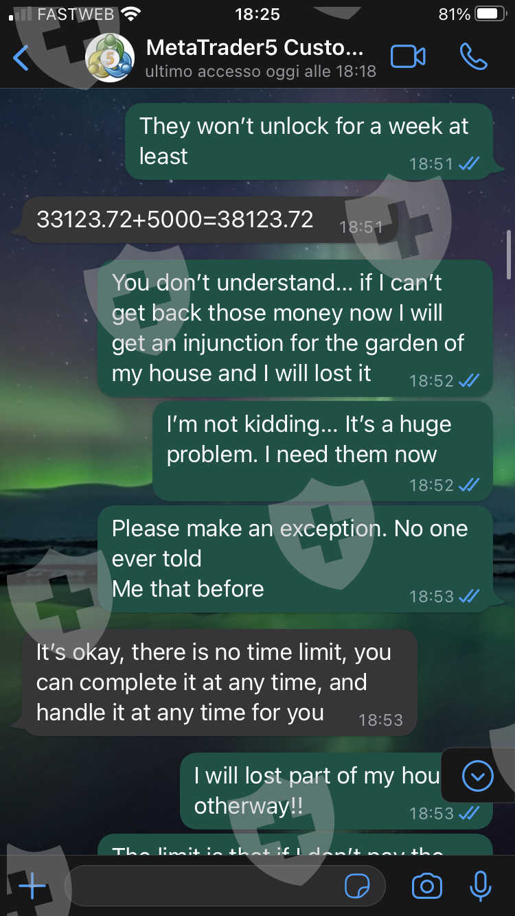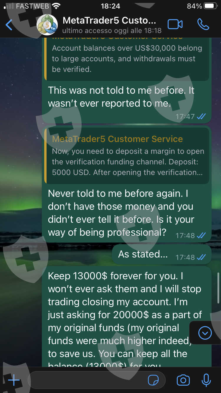 我卷入了一场骗局。一名女性在Sich Capital LTD的MT5上扮演大交易者。她的“名字”是Wàng Lù Qiàn。最后她承认这只是一个大骗局,知道她让一个家庭流落街头,失去他们的房子和钱而感到内疚。因为我的可用资金很少,经纪人表现得很正常。然后我们卖掉了所有来以更高的仓位进行交易。我们投入了大约 20k$并达到了 33k$。此时,他们要求5k$才能提现
