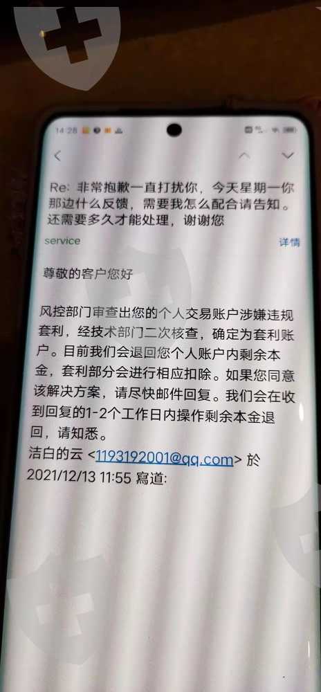 IMF这个平台伪装的很好,平时操作看不出什么问题,出金的时候就不行了只能出50、100的,要是出多了就不给处理了,他们开始只是把我的出金单挂起来,也不给出,也不说不出,这个平台没有客服,只能发邮件联系,当我发邮件给他们的时候,他们就说我的账户涉嫌违规,出金可以,但是要把违规的手续费漏出来,还假惺惺的问我同不同意,我敢不同意吗?然后我就只能回复同意了,这时候我平台上的金就显示已出了,实际上他们只给我账户打了点可怜的吃饭钱,然后我的大量本金就被他们以扣除违规手续费的名义没收了,多么名正言顺。