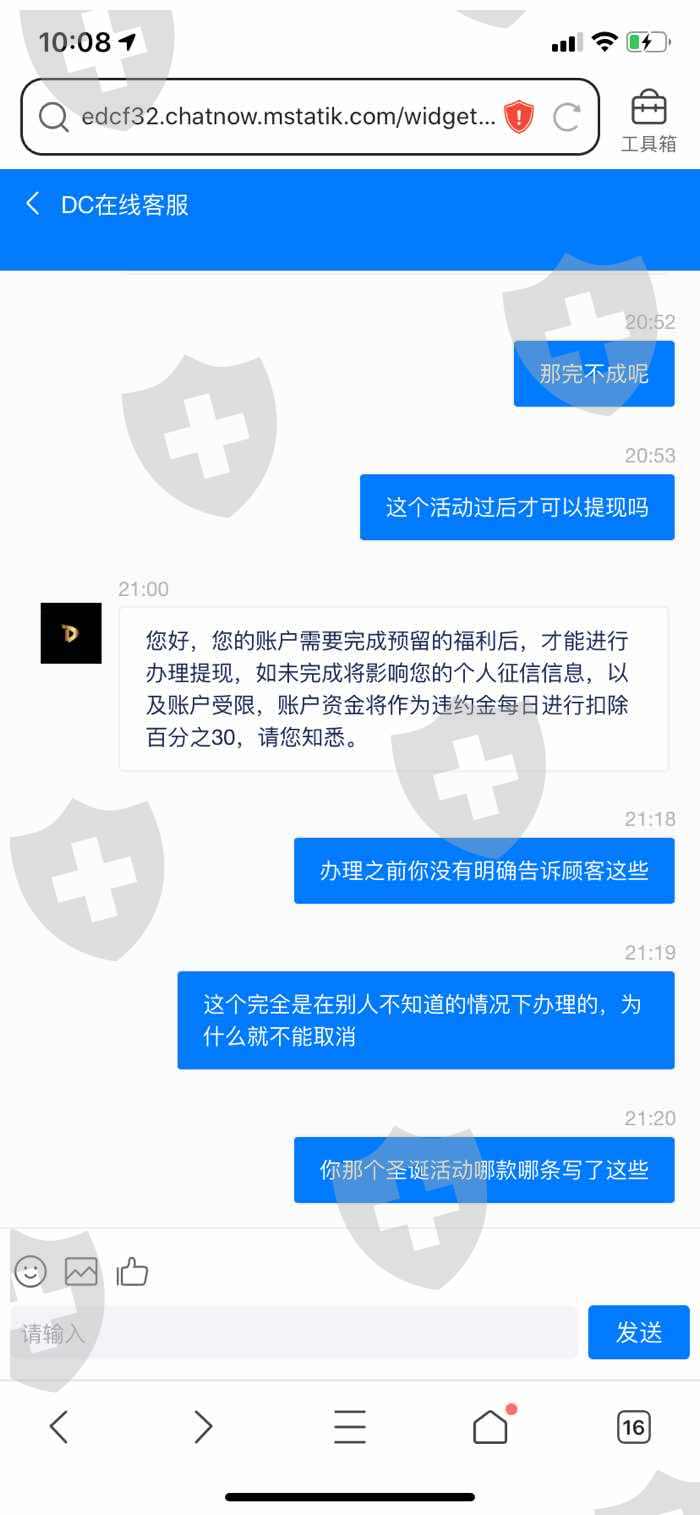 预留一个圣诞累积充值5万送5888.结果等我提钱提不出来的时候才说,必须万充值满这么多才能提现,而且还说我不按照约定充值就每天扣除我本金的百分之三十,这个是没有提前告诉我的,我觉得自己被骗了。
