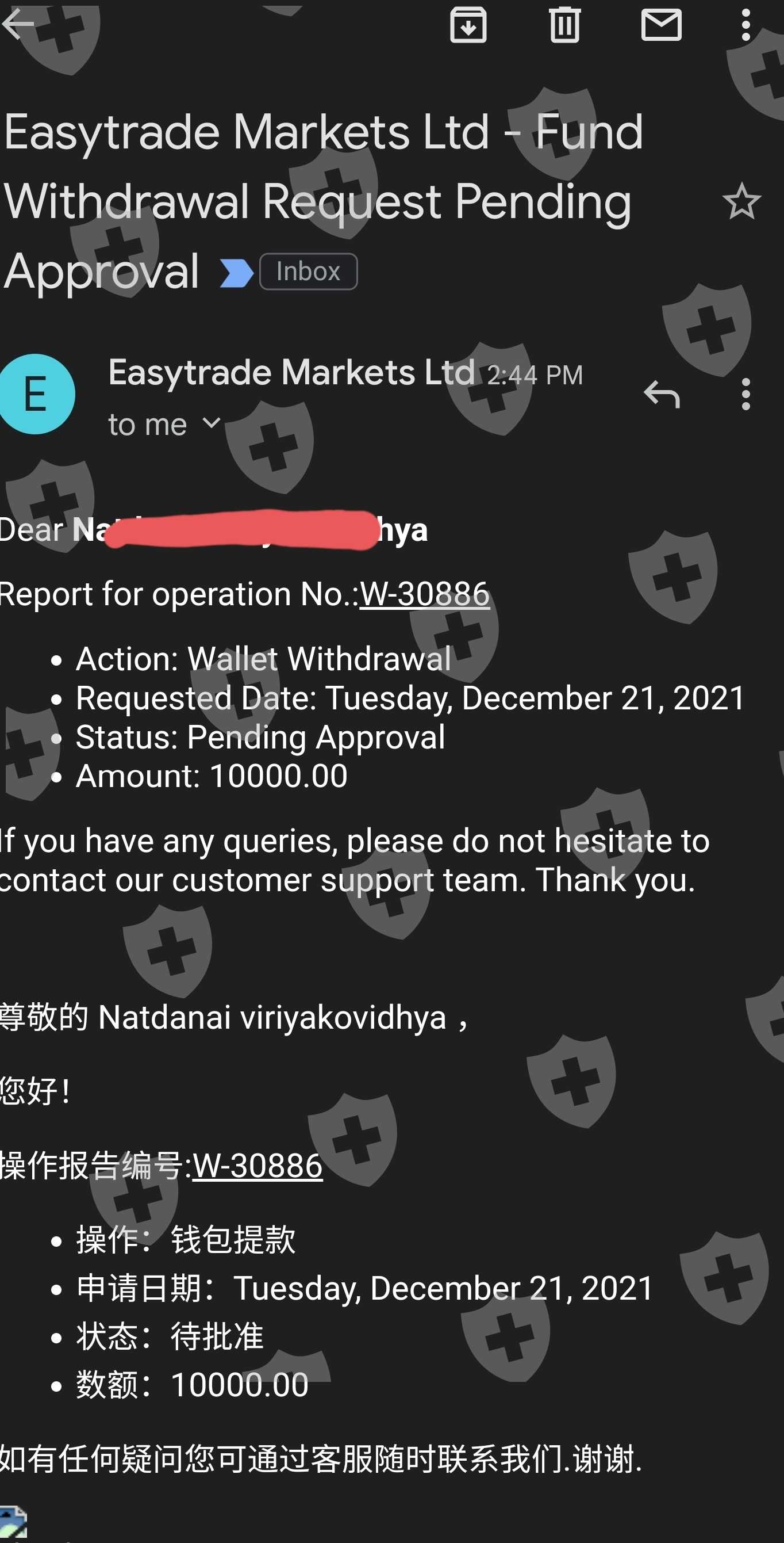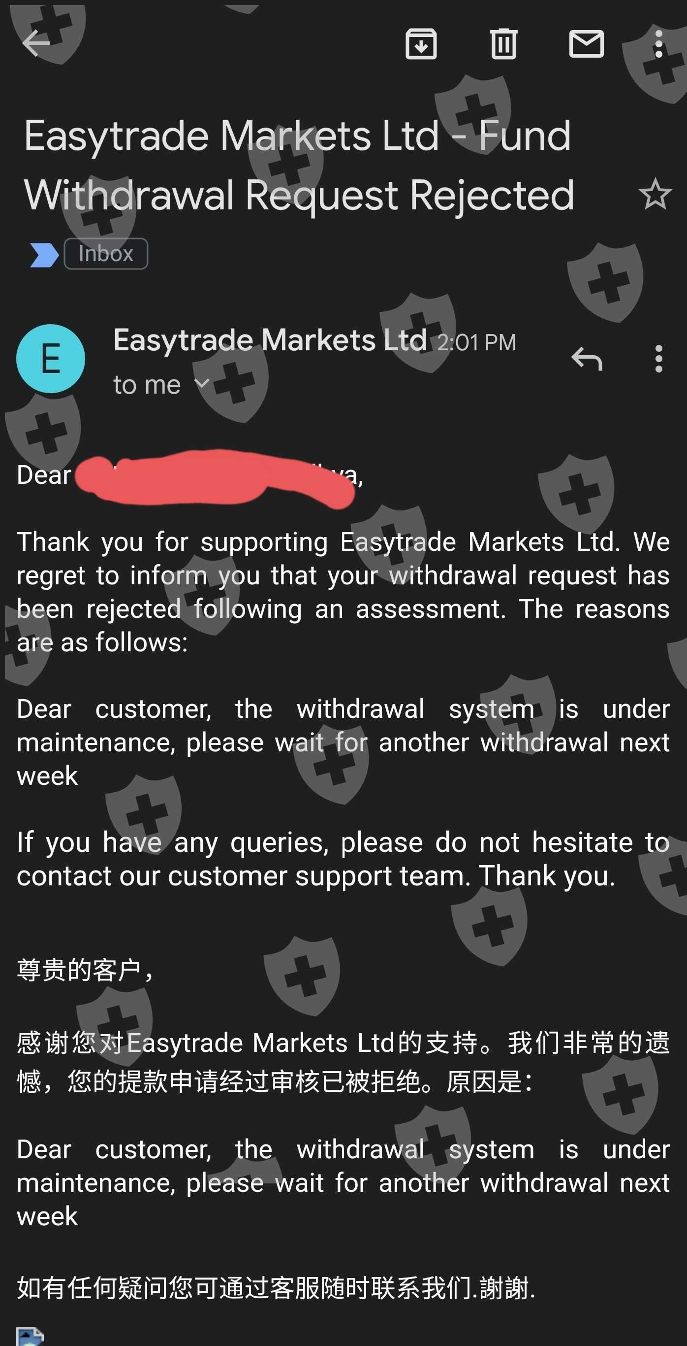 Easy Trade reject my withdraw
