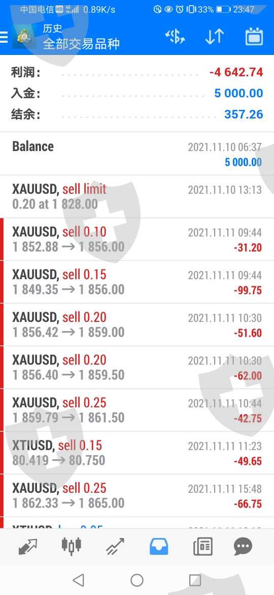 恶意做单不带损,结果出金连最后的357都出不出来。
