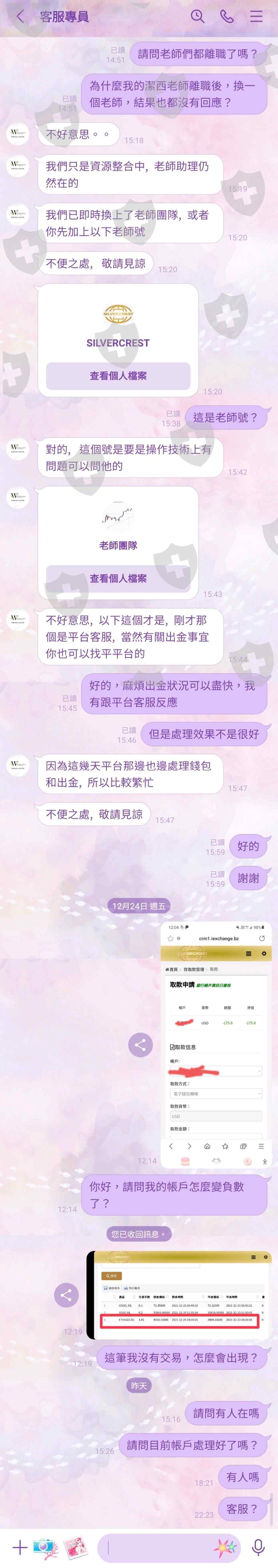 交易系統被盜帳號密碼,使其交易金額全部沒了,交易商或客服及老師都沒有任何回應。