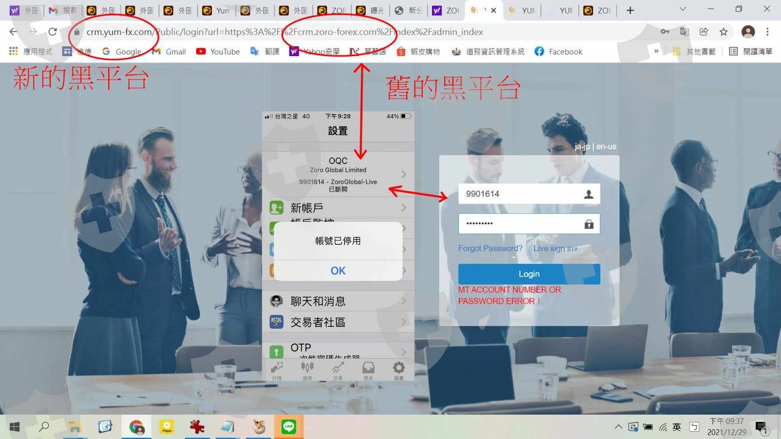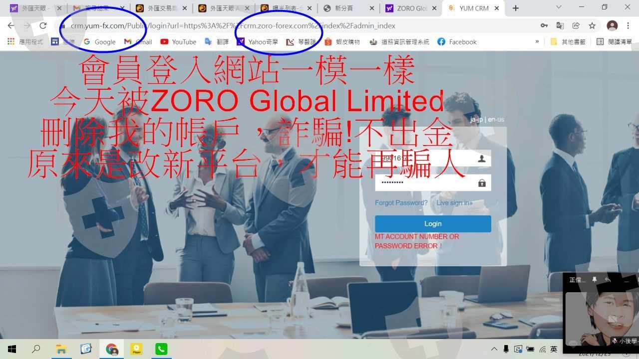 2021年12月29日,發現ZORO Global Limited黑平台刪除我的會員帳號,查詢後發現黑平台改成新的名稱,這是新的黑平台 Yum Group Global Ltd。我2021年11月12日從ZORO Global Limited平台申請出金,誘導我要支付手續費,又說不支付不給出金。