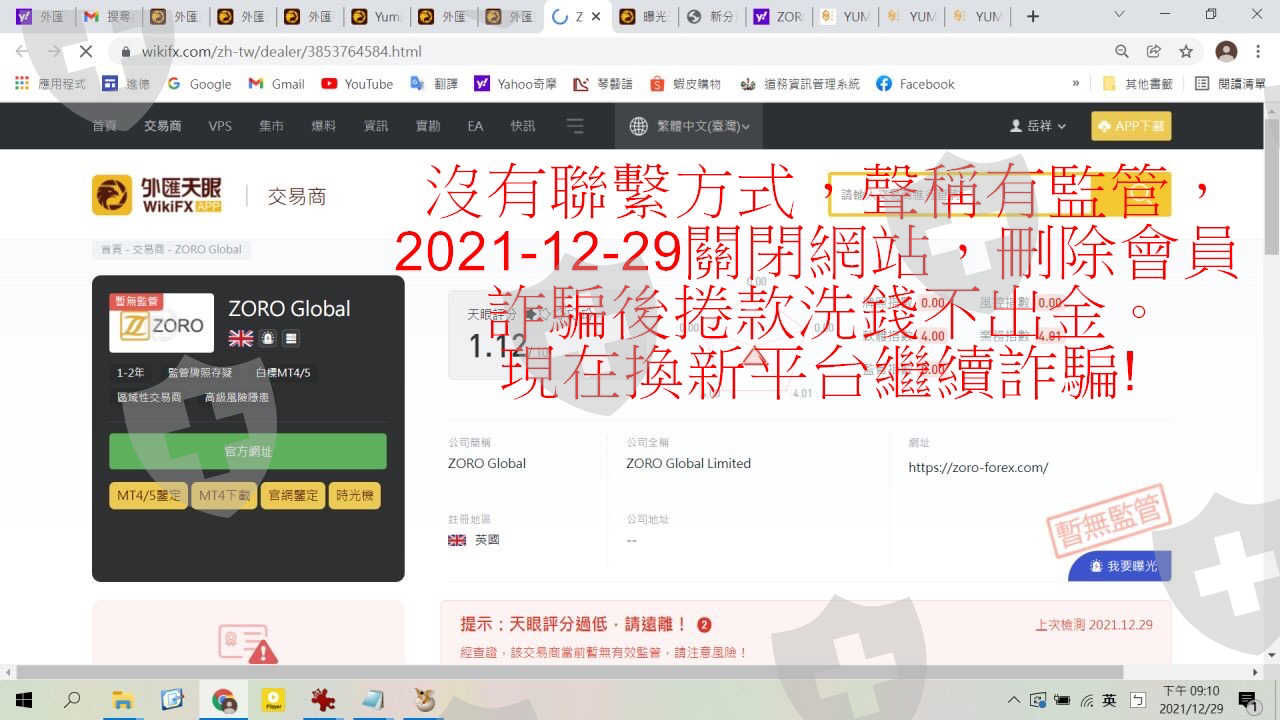 這個黑平台原本名稱是ZORO Global Limited,今天2021年12月28日改成 Yum Group Global Ltd