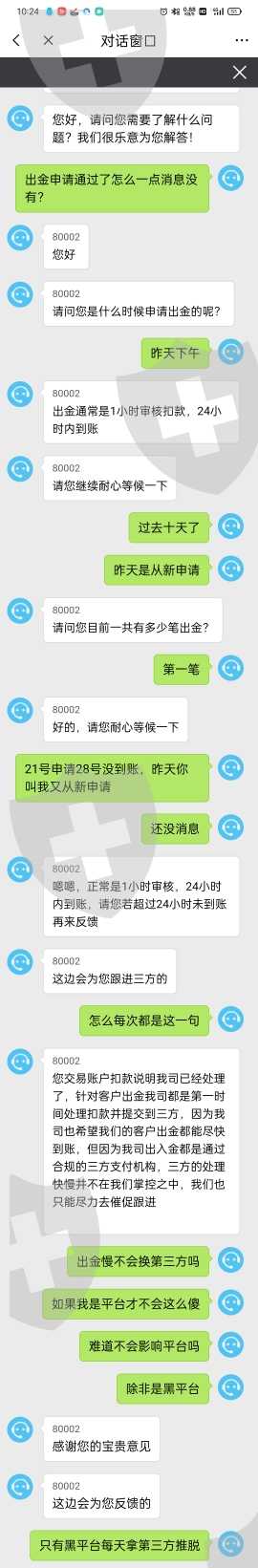 21号出金没到账,昨天叫我从新申请,还是没消息