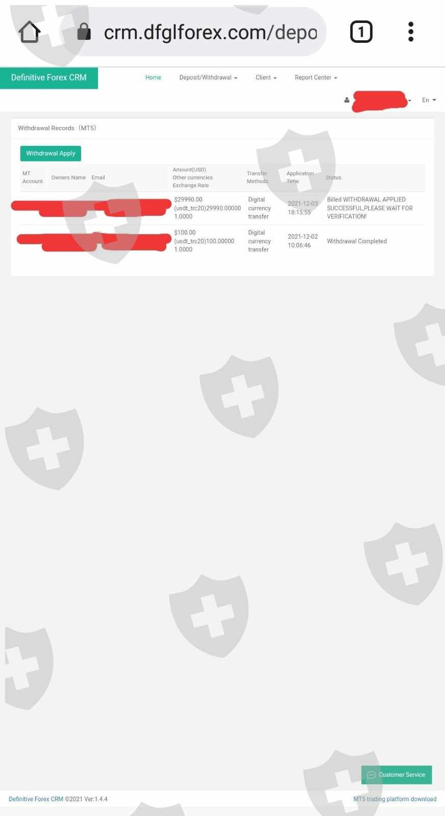 自2021年12月3日起就无法出金29990美元。存款在2021年12月8日蒸发了1500.7 美元。