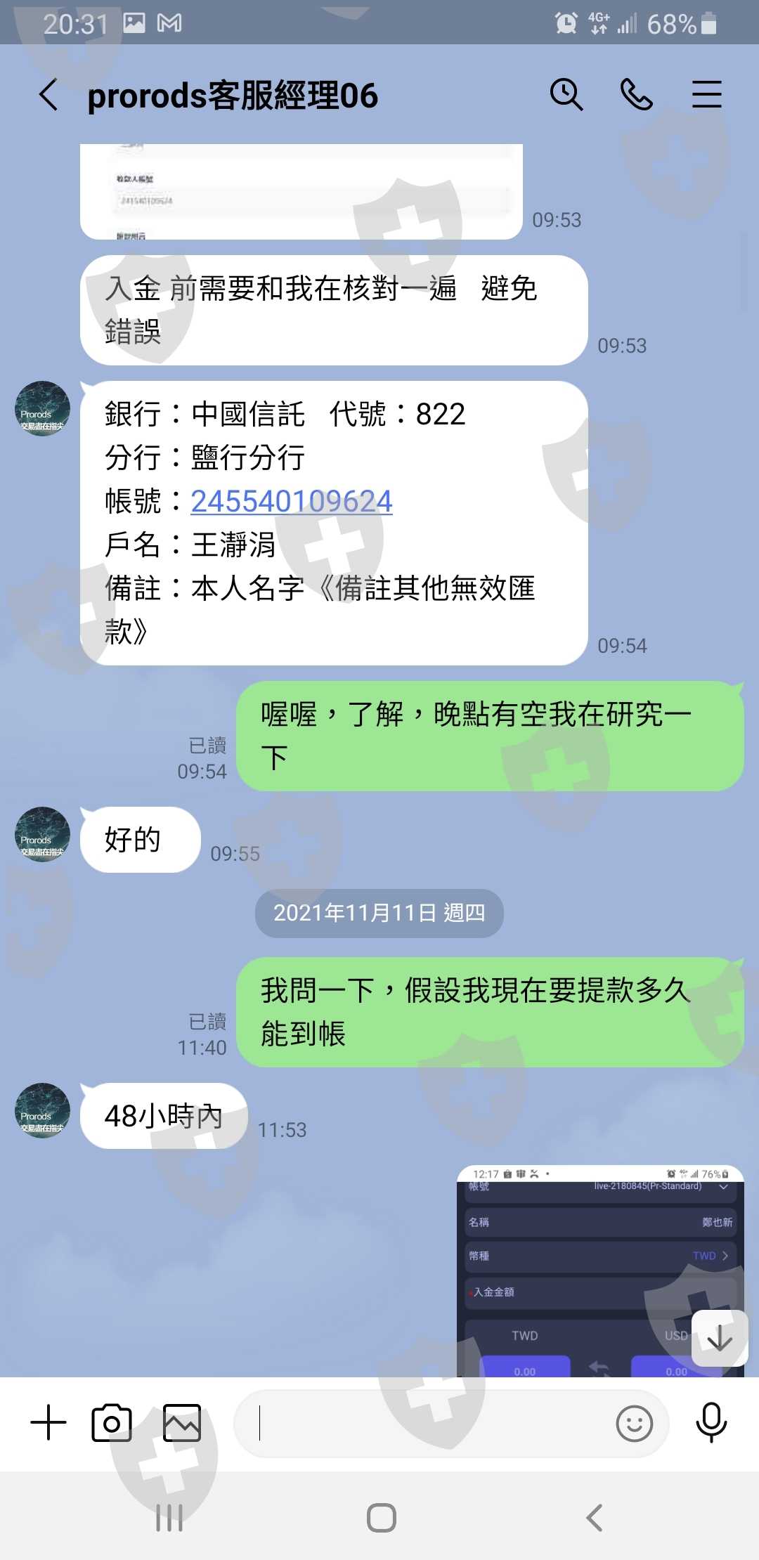 當天我聯繫助理說:妳不讓我出金也要把數字推回去MT4吧,助理表示同意。