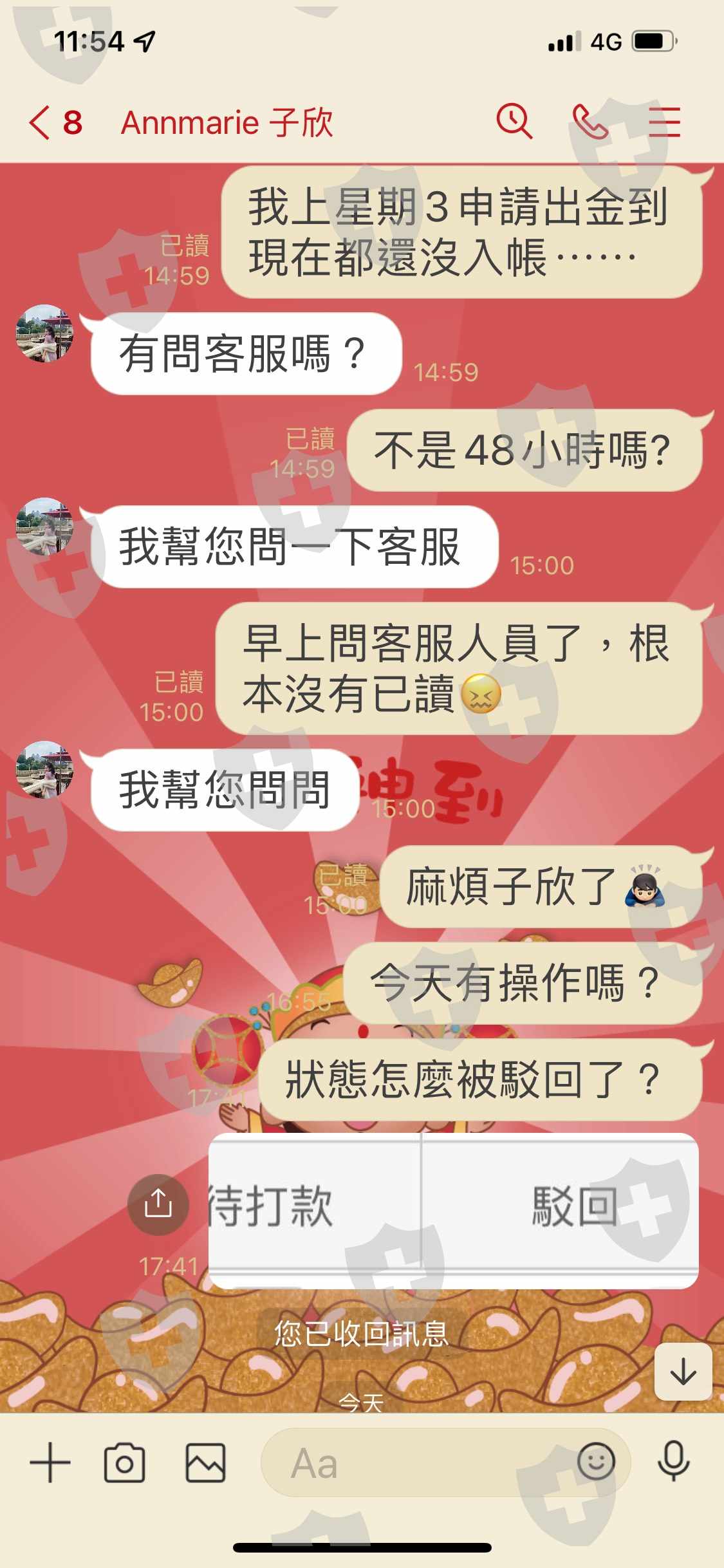 剛開始要你加入會員入金操作時會讓你出金一小部分,然後慢慢引誘你投入更多資金,最後等你資金全部投入後客服人員就會不理睬妳,然後跟助理反應根本不理會,最後等你登入網站時就會發現帳號被封鎖無法登入,MT4APP也被停用,請大家小心以免上當受騙