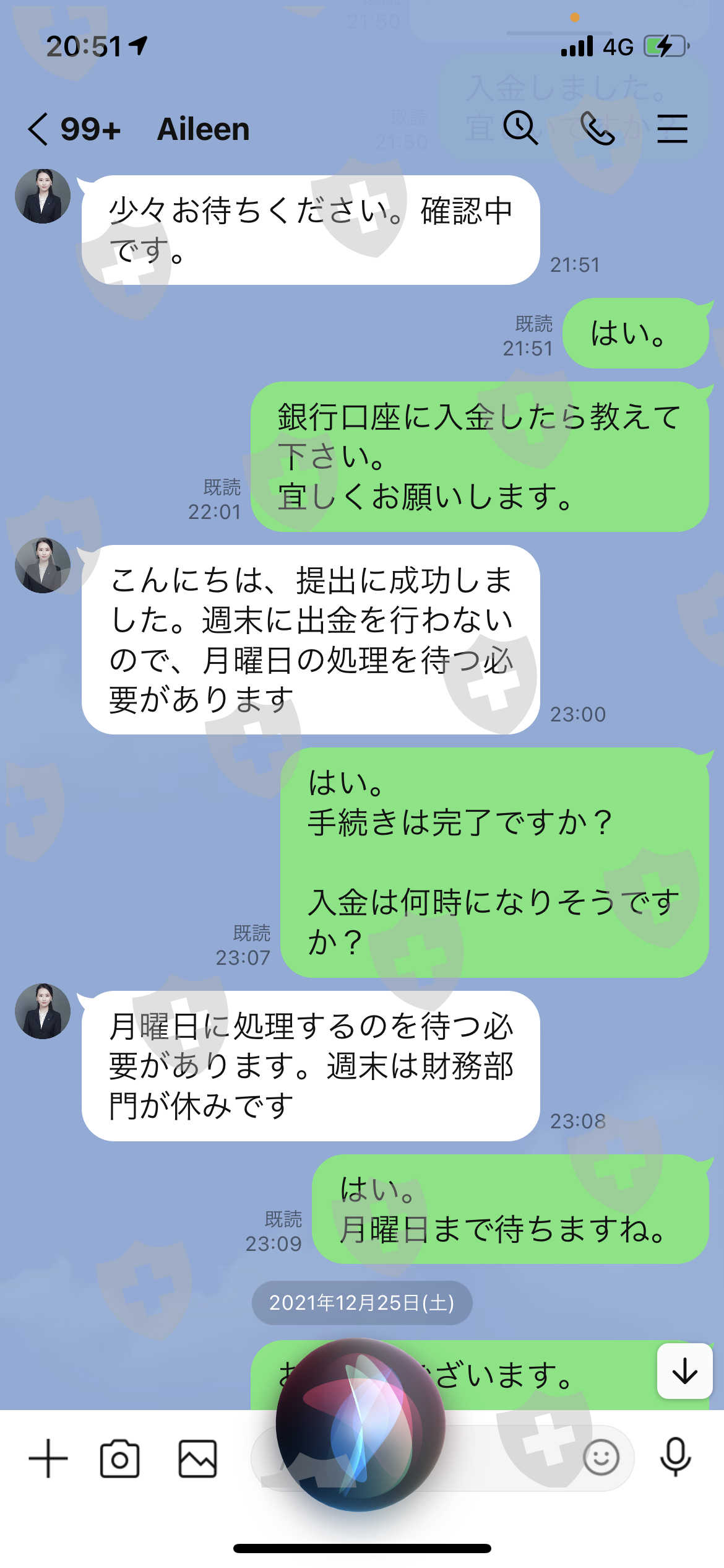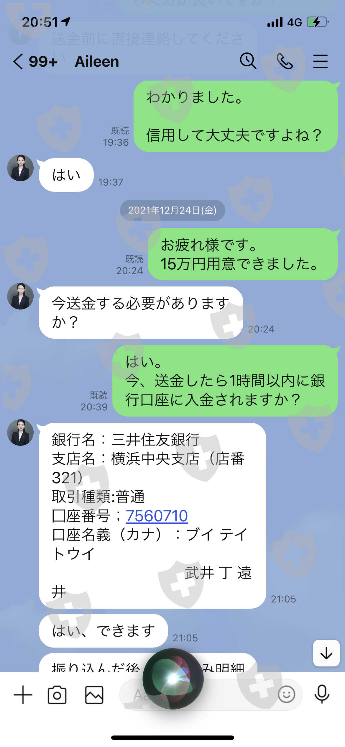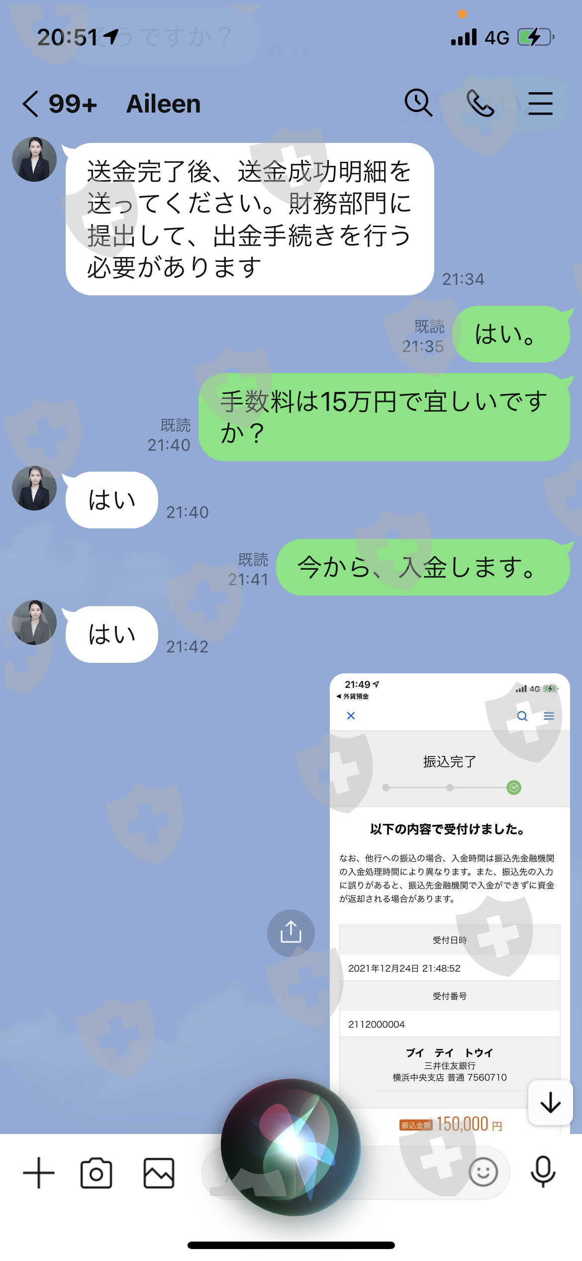 我向负责账户经理的艾伦先生存入了 15 万日元的提款费,但没有进行账户转账。