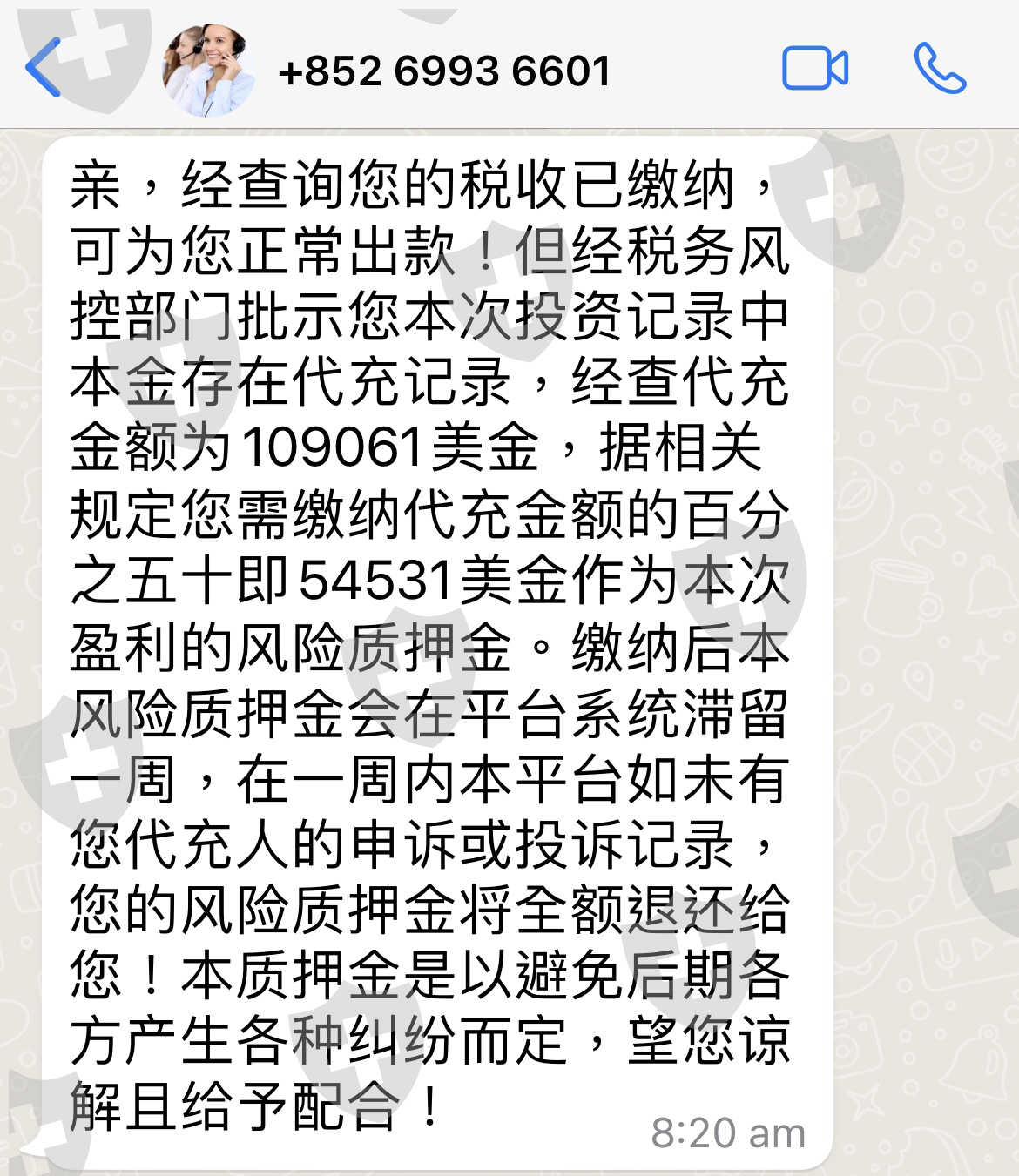 客服一直要我交各种费用,包括税费、风控费。我付完所有的费用后,他们说旺季需要1-3个月的时间才能拿回钱,或者另外支付VIP提款费以加快提款过程。