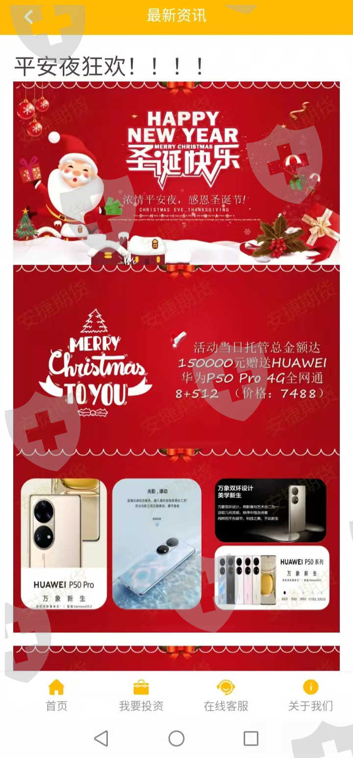 本人12.14号进入安捷期货平台,一共投资一共60多万,元旦期间,我想把本金提现,过了二十四小时,仍不能提现。平台突然关闭,找不到接头人,群里炸锅,大家才发现上当受骗!还我血汗钱!我们努力几年才能挣到的钱,全部被骗!希望曝光他们,早日抓到这帮犯罪团伙!