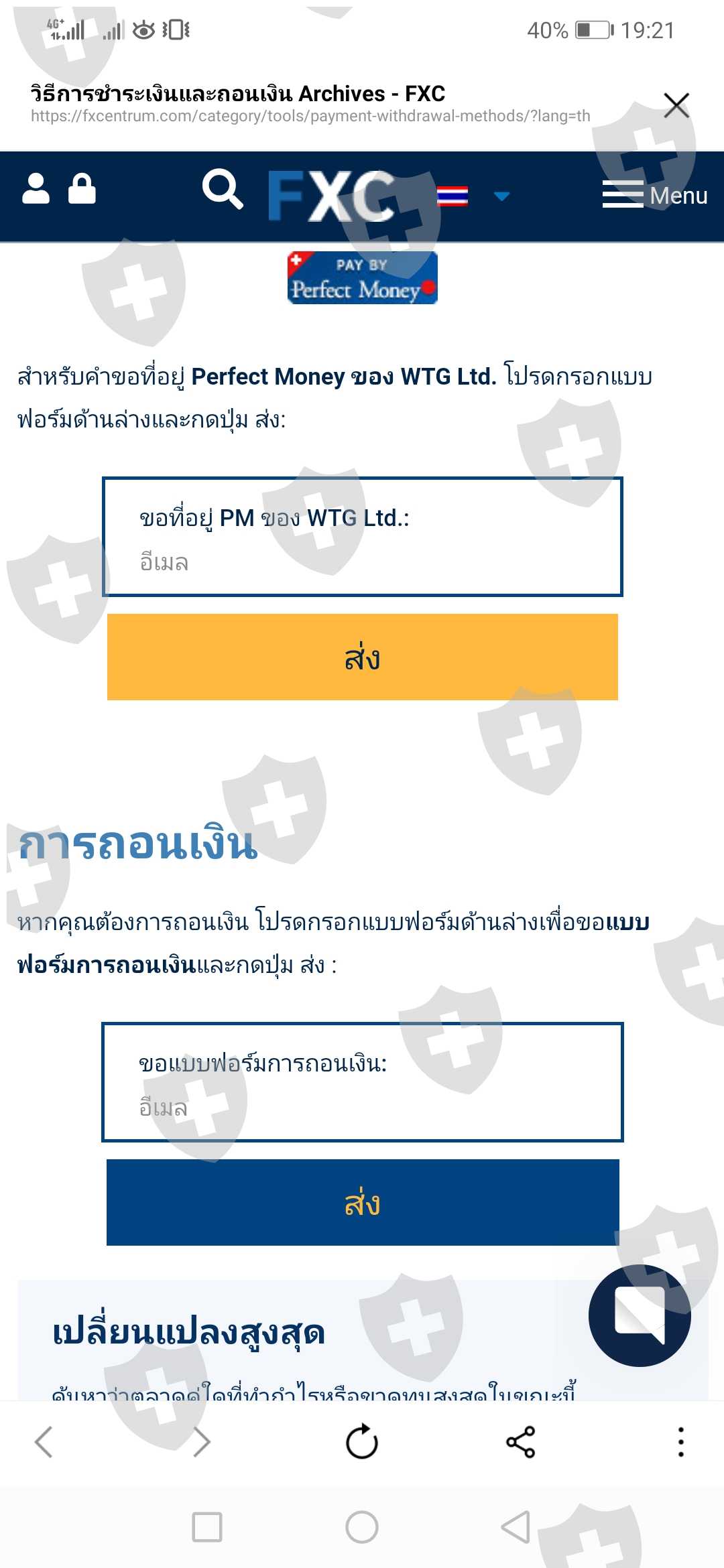 แต่ไม่มีการตอบกลับอีเมล์ แบบฟอร์มการถอนเงินจาก FXC