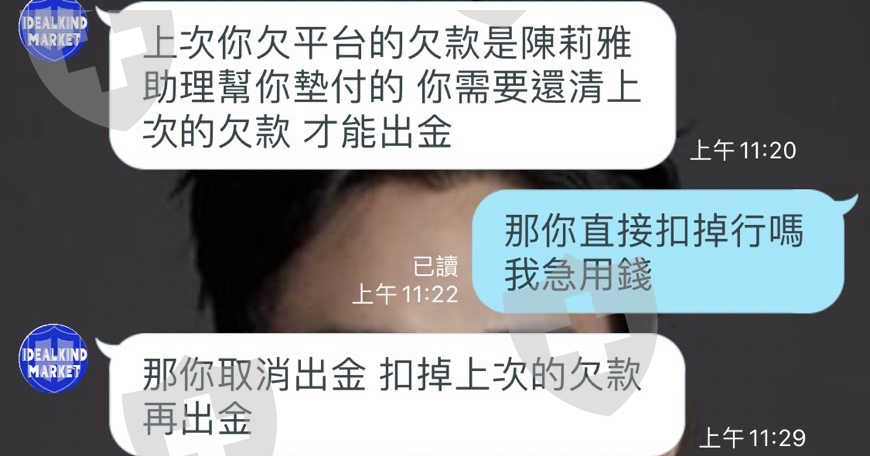 加了會員先報股票讓你損失說要帶你賺回來,接著就是公私不分無法順利出金,再洗你加金操作,不說出金都沒事,只要提到出金就會因為滑點嚴重導致強制平倉,後面知道你沒錢加了就踢出群組,再用法律恐嚇你要把欠平台的金額繳了