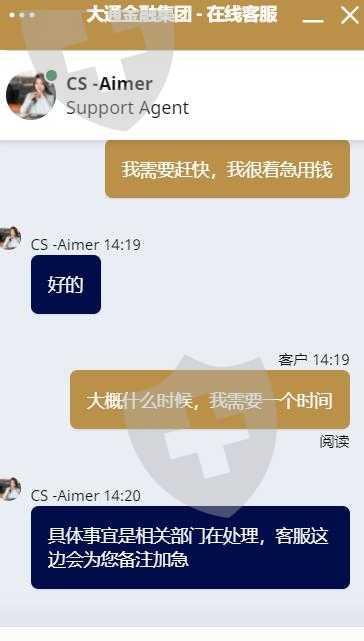 两个月已经大通的客服经理都不回信息了,我们资金都出来了,提款两个月了都没有汇款,现在大通官网客服都是压根不解决事情,统一的回复。大陆所有客户都出不了金,涉嫌上亿金额,难道没人管了吗!!!!