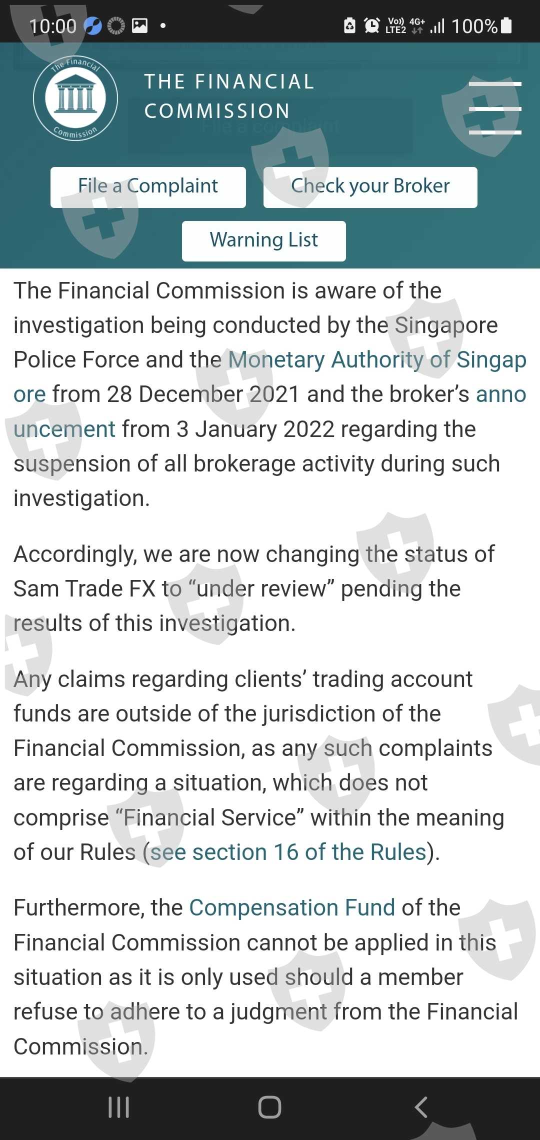 Referring to a media release dated 3 January 2022 by the Commercial Affairs Department of the Singapore Police and the Singapore Monetary Authority (collectively the "Authorities") in connection with investigations into Samtrade FX.