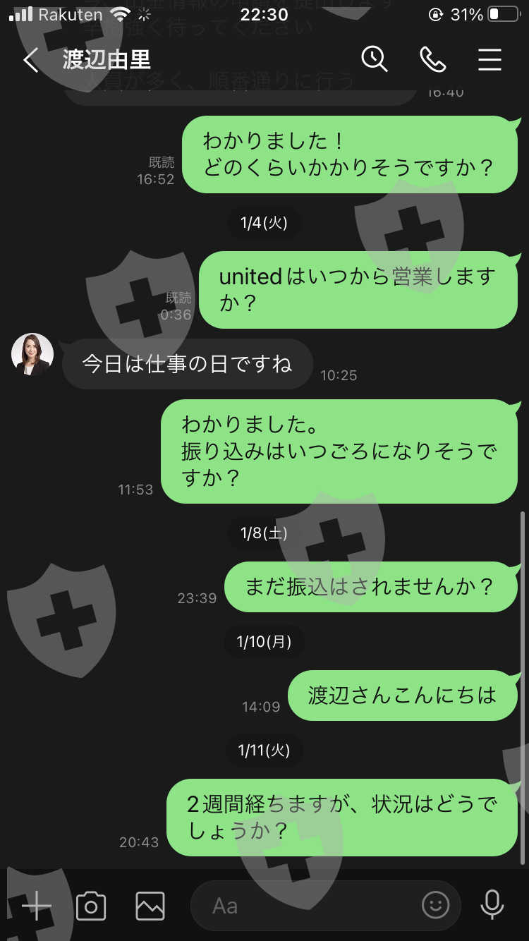 随着熟人的介绍,开始与矢野奈美子互动。介绍另一个熟人,据说是存款。被告知一个月不能提款,12月28日被告知可以提款,但是自从被告知申请提款后一直无法转账。 FX账户也无效,联系不上客户经理渡边。 Namiko Yano 推荐了另一笔 FX 投资 / BTC 投资,并按照说的做了,但无法再次退出。帮我。