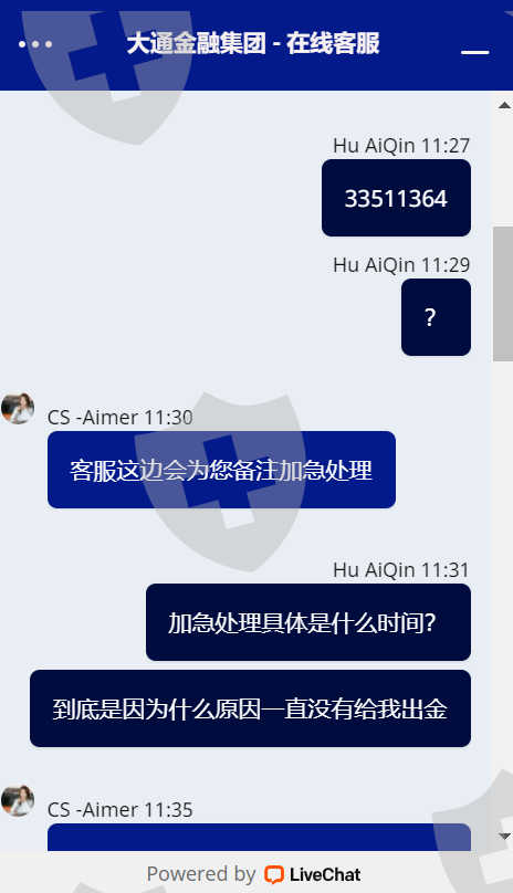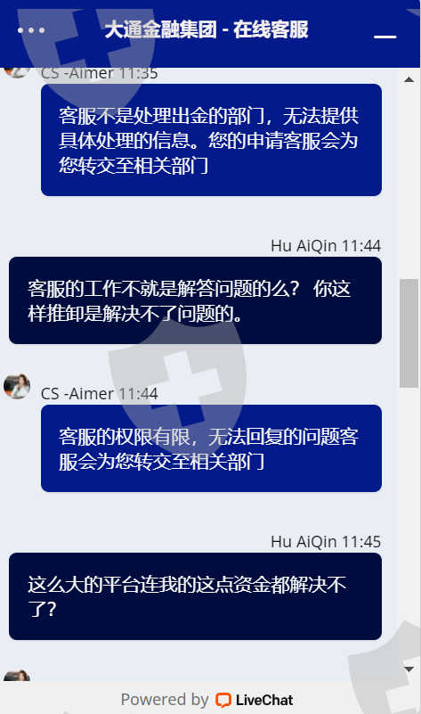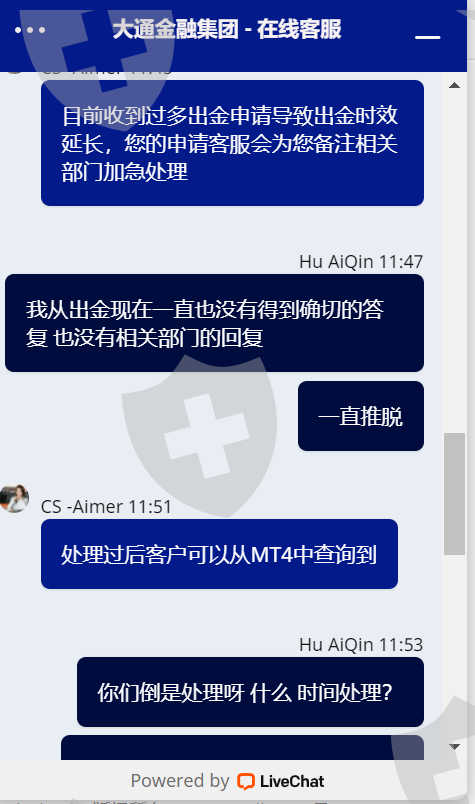 大通金融近一个月一直没有出金。联系客服每次都说正在办理 一直推脱 也没有具体时间