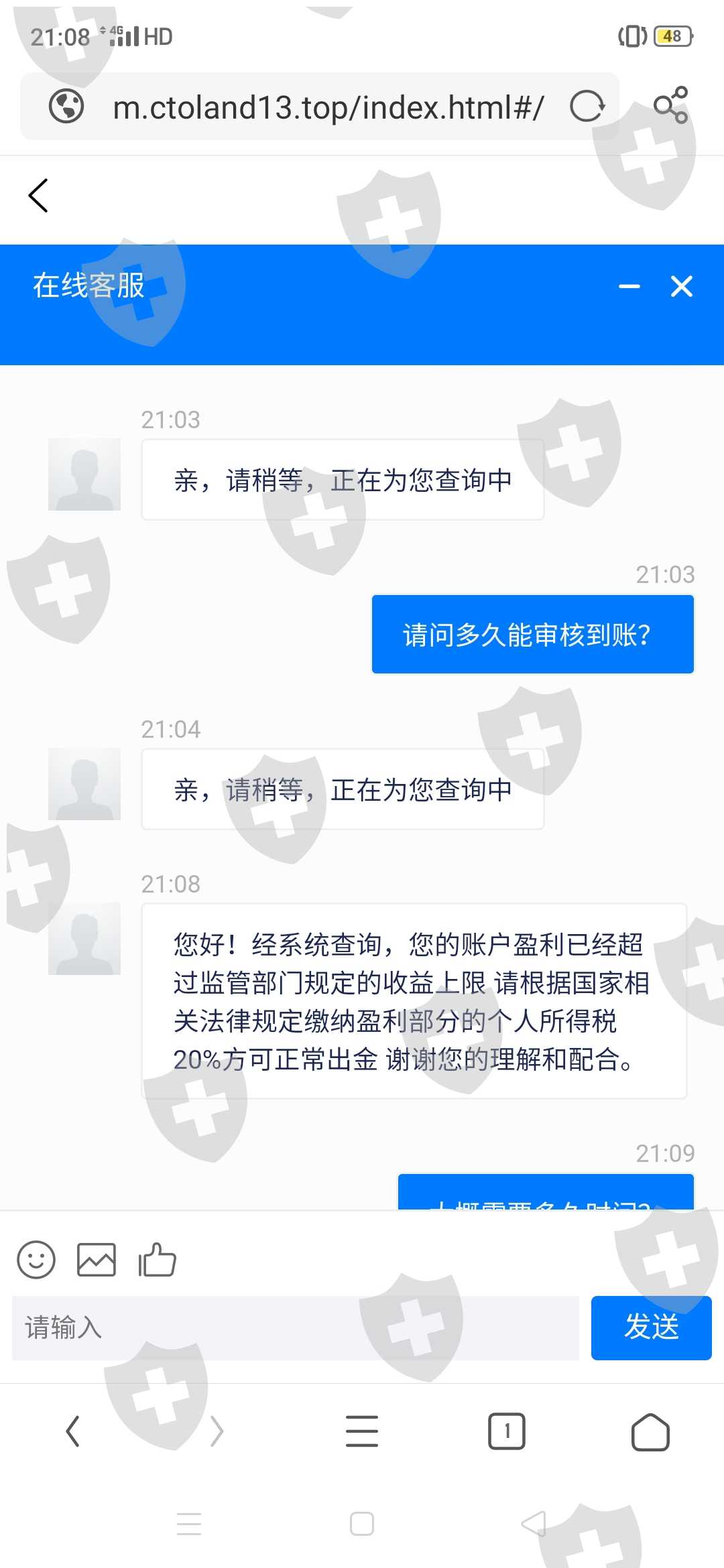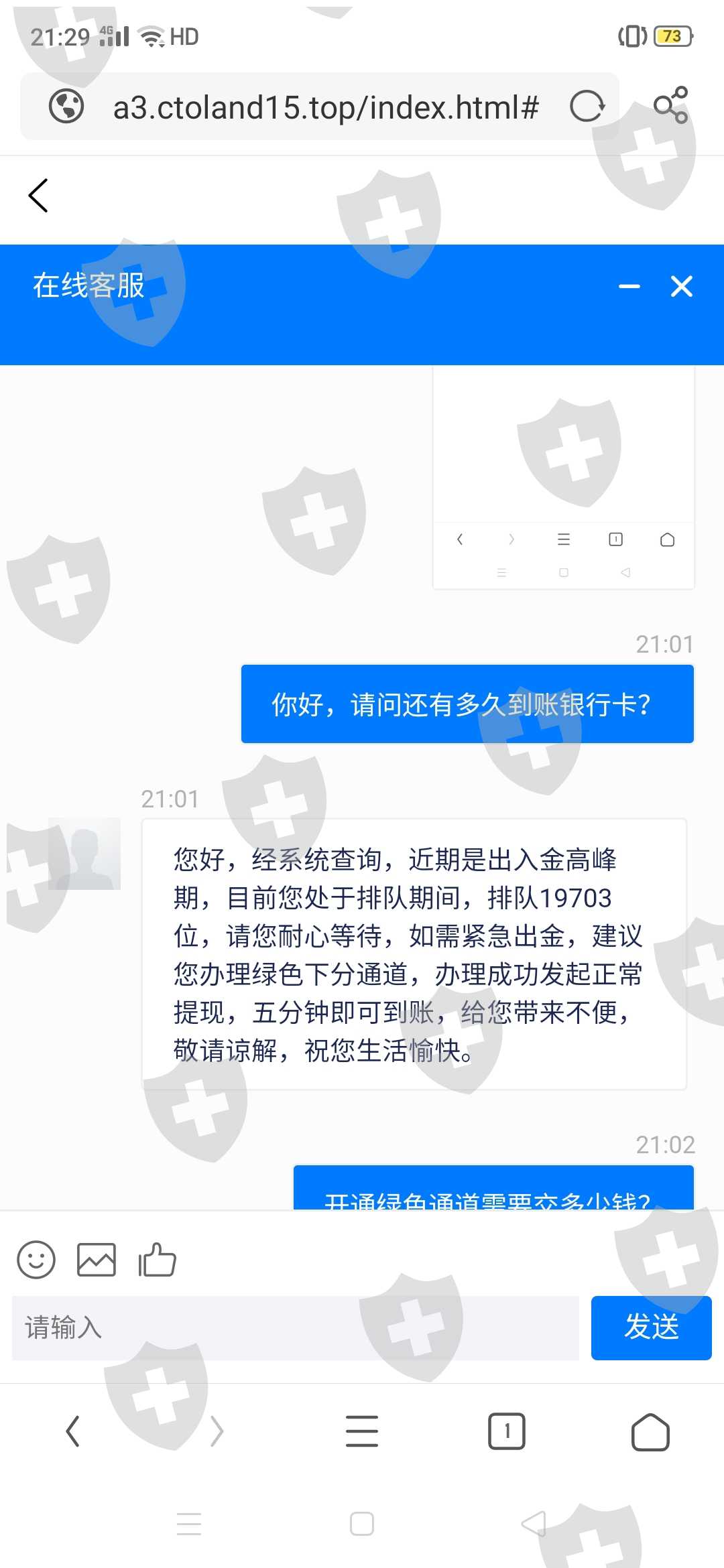 客服在出金时说盈利已经超过监管部门规定上限,要交20%个人所得税,交了后客服说出入金高峰期,很多人排队,说开通绿色通道就可以马上出金,开通了绿色通道后,就登录不进去了,无法联系客服。前前后后汇了28万多,我的血汗钱,痛哭。