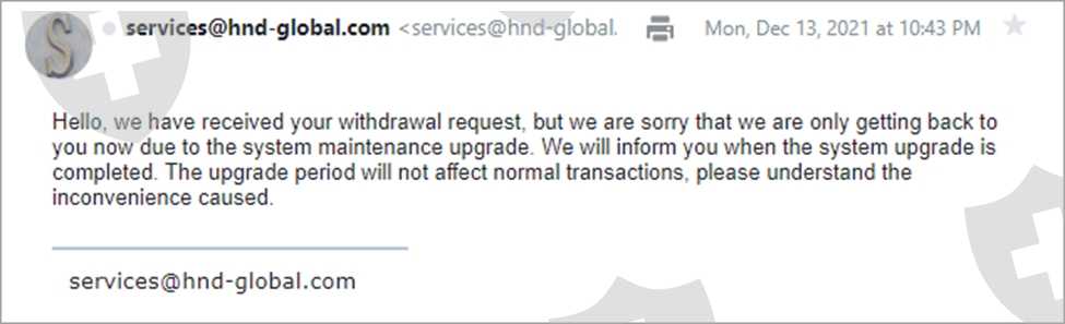 Unable to Withdraw & No Communication