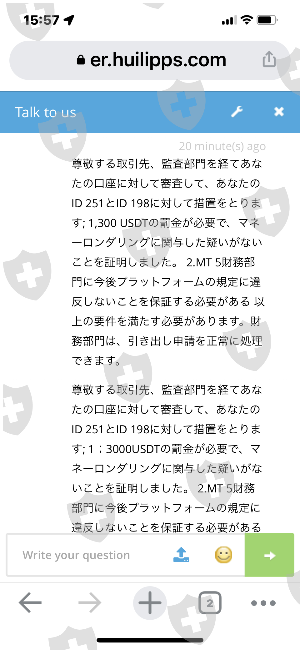 我在 Facebook 上遇到的一位女士将我带到 LINE 并请求进行金融交易。交易平台是 mt5.prafili.com。 ID251 是为私人使用而发行的,那位女士 (ID198) 将 2000 美元存入我的账户,并告诉我存入相同数量的钱。所以,我先发了3万日元开户,然后7万日元,然后10万日元到指定的住友银行个人账户,交易从一笔交易开始,所以是5340美金,所以提款申请的时候就被怀疑了洗钱并支付了3000美元的罚款。之后,我要求支付1000美元,因为我的提款申请有延迟,我每次都支付。仍然没有付款,我被要求支付 1500 美元。我还没有收到任何钱。